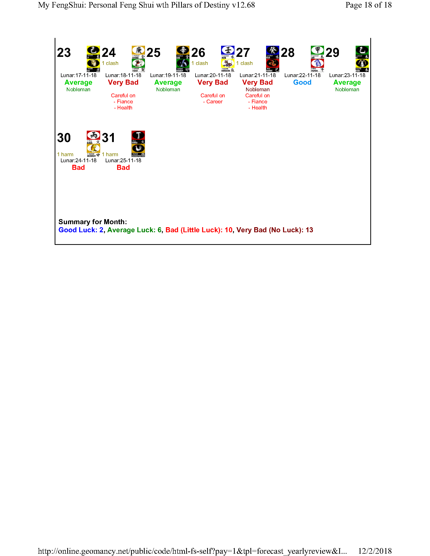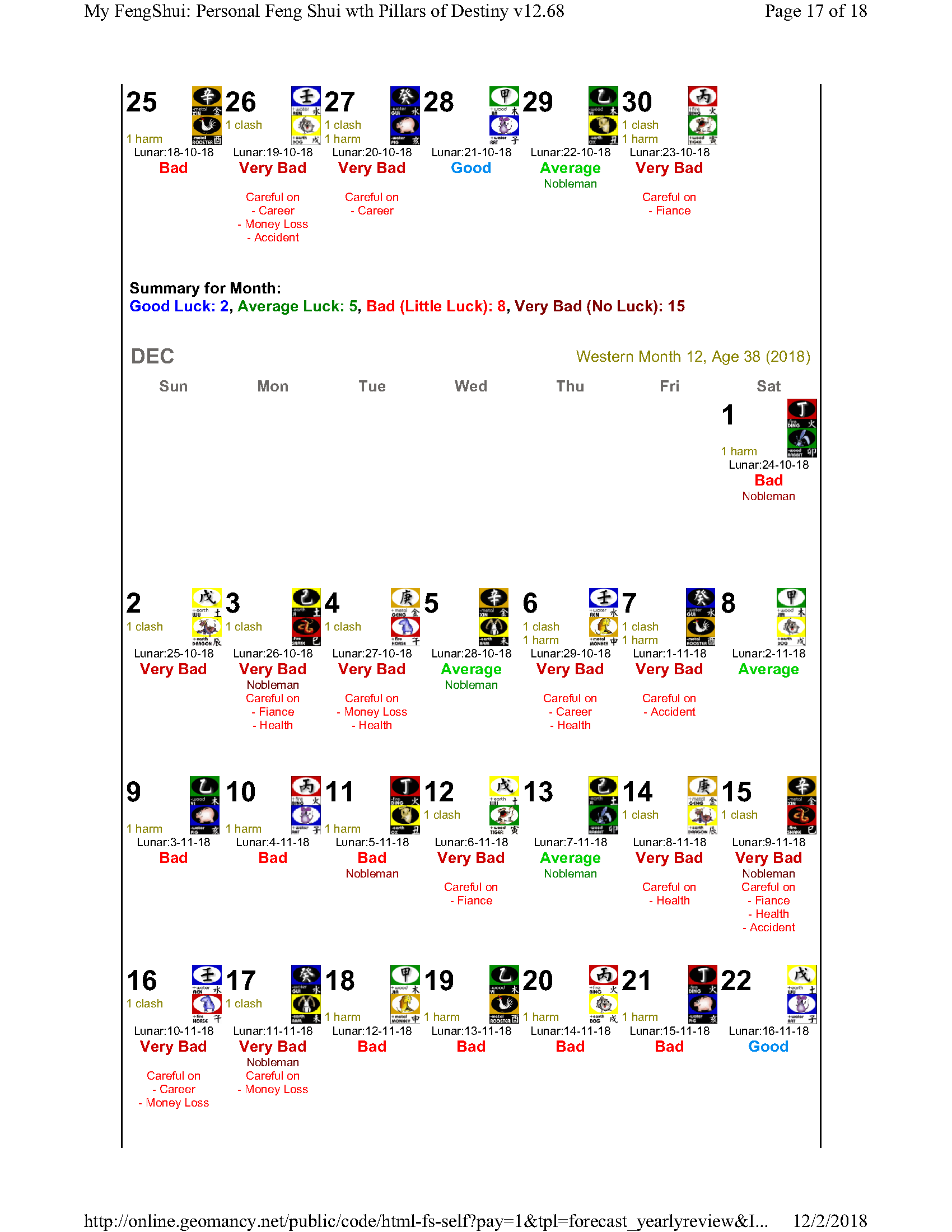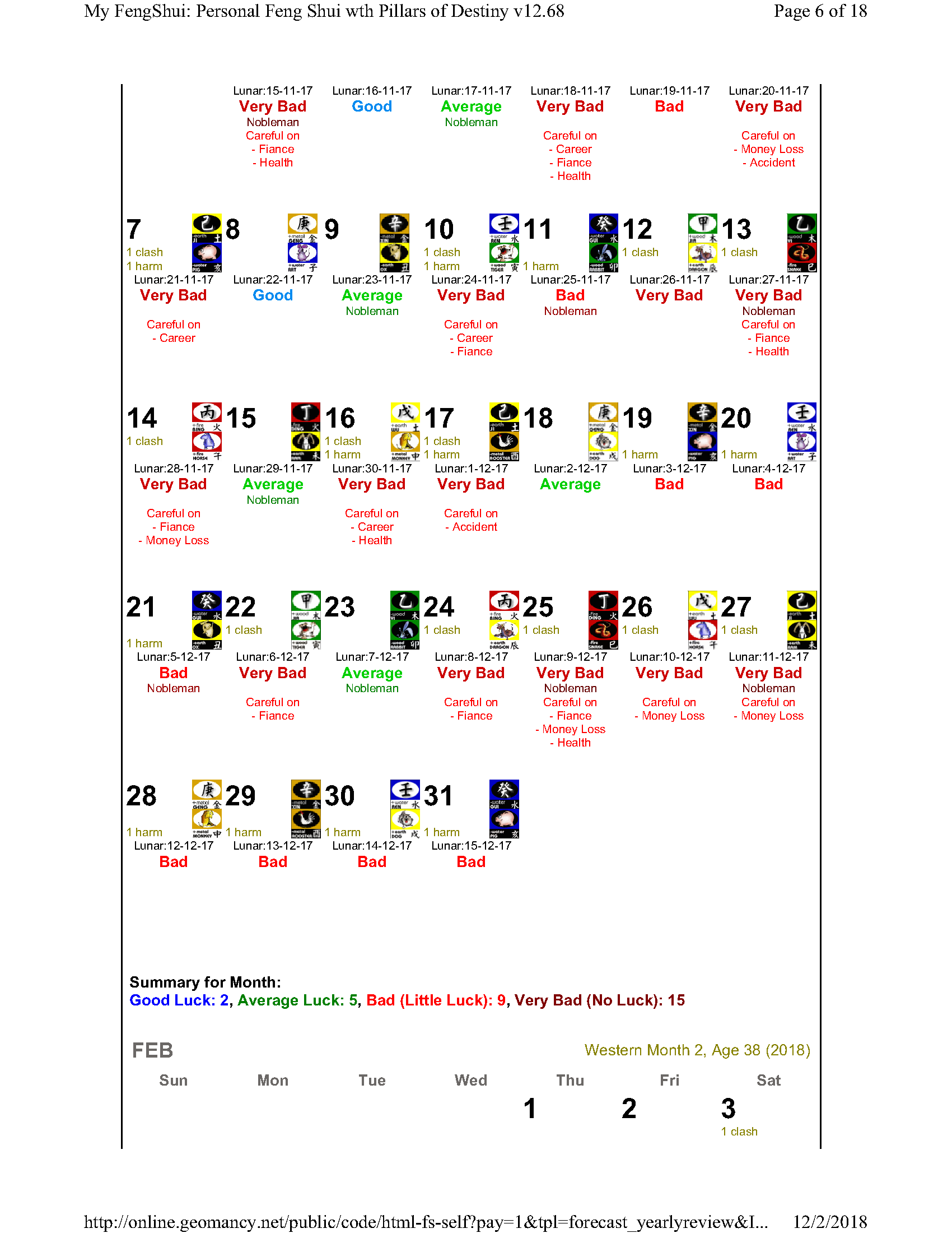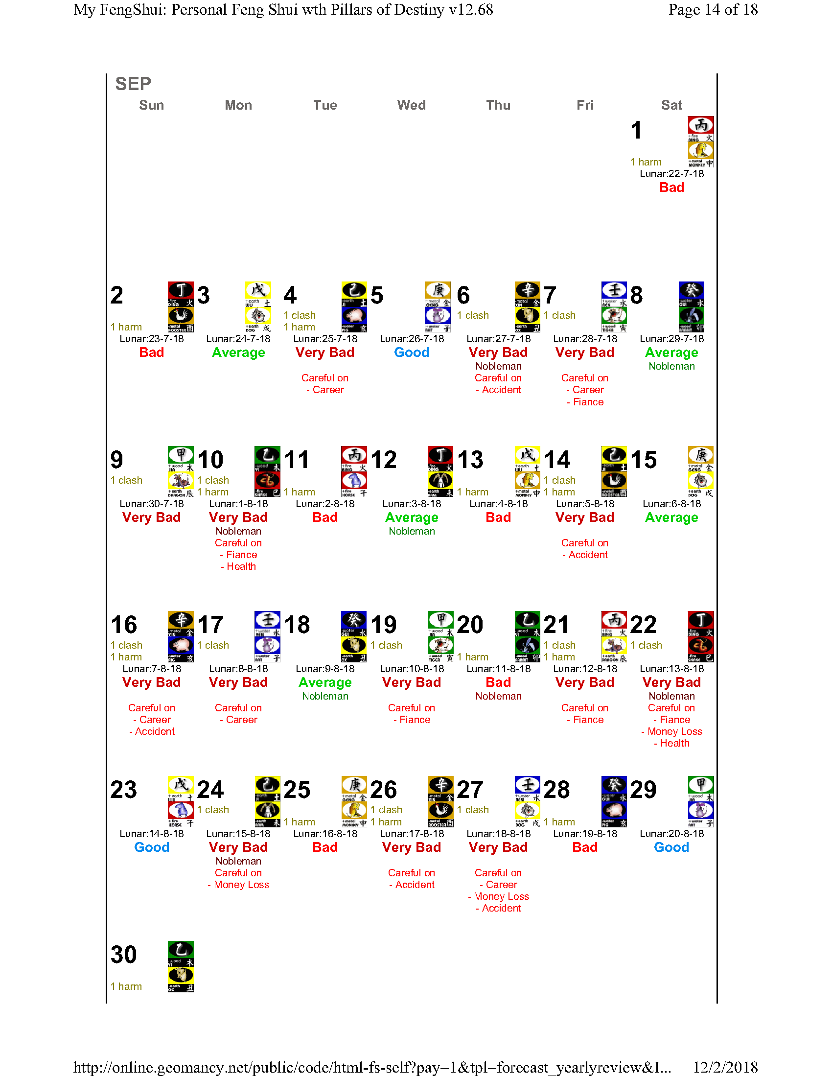 February 12, 20187 yr Author Staff Mr Ba Zi and highlights for the Year 2018 Summary of monthly expectations for Mr Ba Zi 1st lunar month: Be extra careful with money 2nd lunar month: Average to fair month 3rd lunar month: Be extra careful with money 4th lunar month: Be careful of money and health 5th lunar month: Good month 6th lunar month: Be extra careful with money 7th lunar month: Be careful with career and health 8th lunar month: Beware of quarrels and relationship issues 9th lunar month: Average to fair month 10th lunar month: Take care in whatever you do 11th lunar month: Beware of quarrels and relationship issues 12th lunar month: Average to fair month