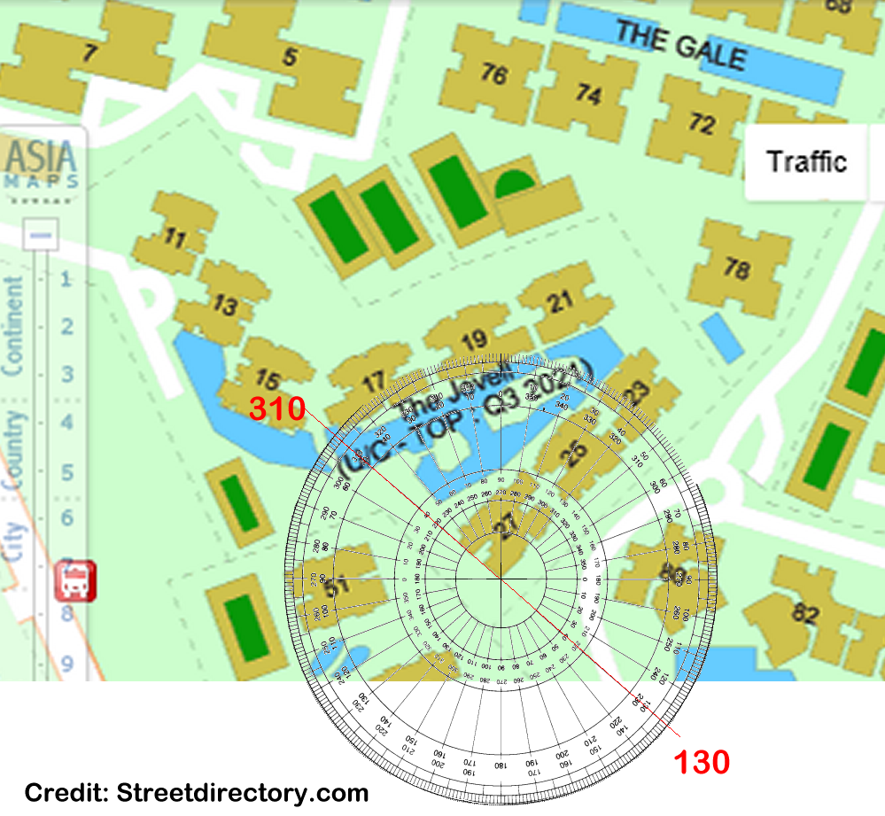 September 30, 20187 yr Author Staff Part 7 - Can I rely on the Sales Brochure Site map's (SBSM) North compass direction? 1. Sampling of compass directions of Block 27 shows a compass reading of either SE2 = 130 degrees or NW2 = 320 degrees: 2. The Jovell SBSM compass readings also shows SE2 = 132 degrees and NW2 = 312 degrees: 3. Is the Sales Brochure Sitemap accurate? Yes! Just a small 2 degrees variance between the Streetdirectory and SBSM.