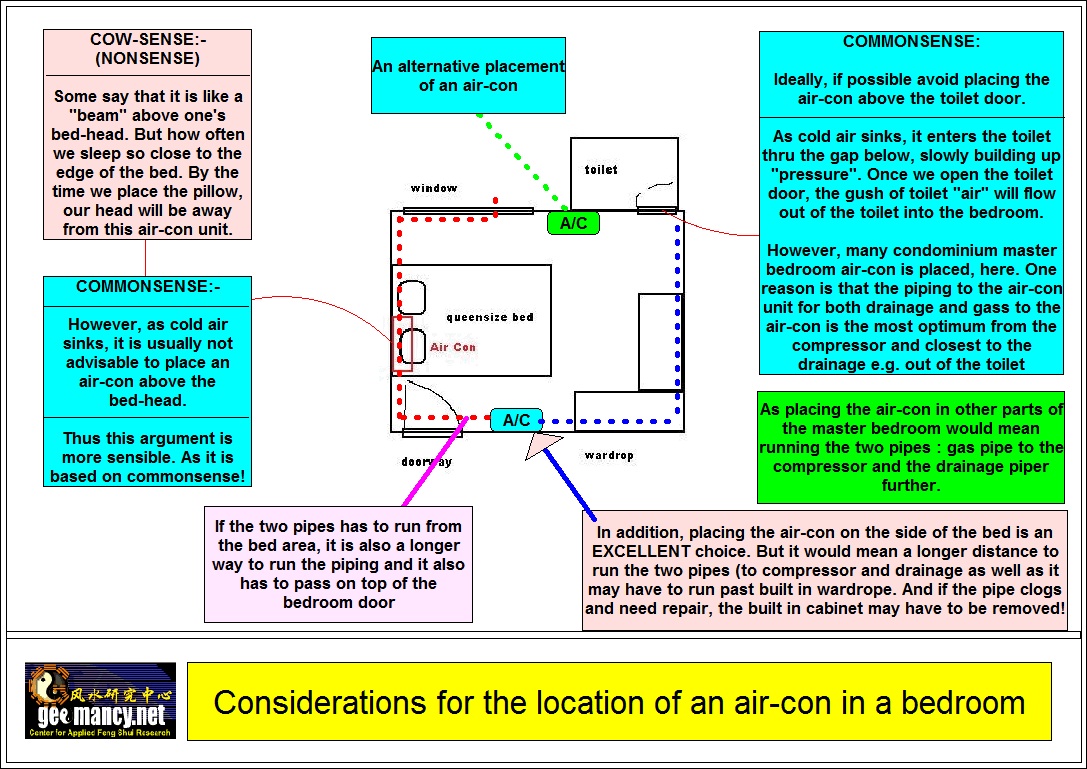 Considerations for the location of an air-con in a bedroom