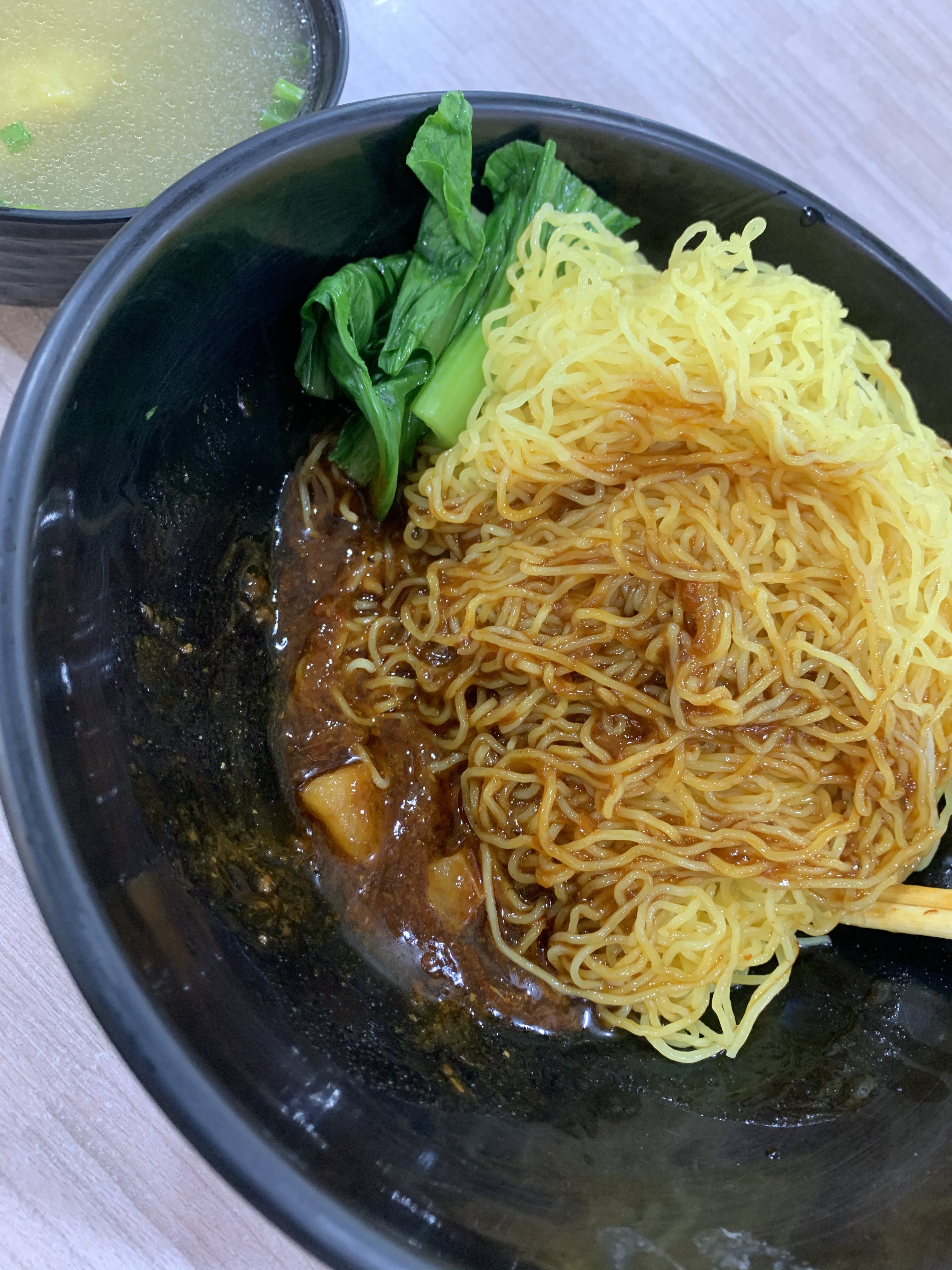 January 30, 20215 yr Author Staff Previously tried their standard yellow noodles. This time their spinach noodles. Frankly, harder to find a stall selling these spinach (green) noodles. Because of the black sauce added, cannot really tell that it was once a nice green coloured noodles. There are several other wanton noodles stall here. This stall is less busy.. and open early. But must say their black sauce non-chilli version is nice. $3/- per plate even for this spinach version. Can you see the green coloured noodles in this photo? Finished everything on the plate except for the juice..