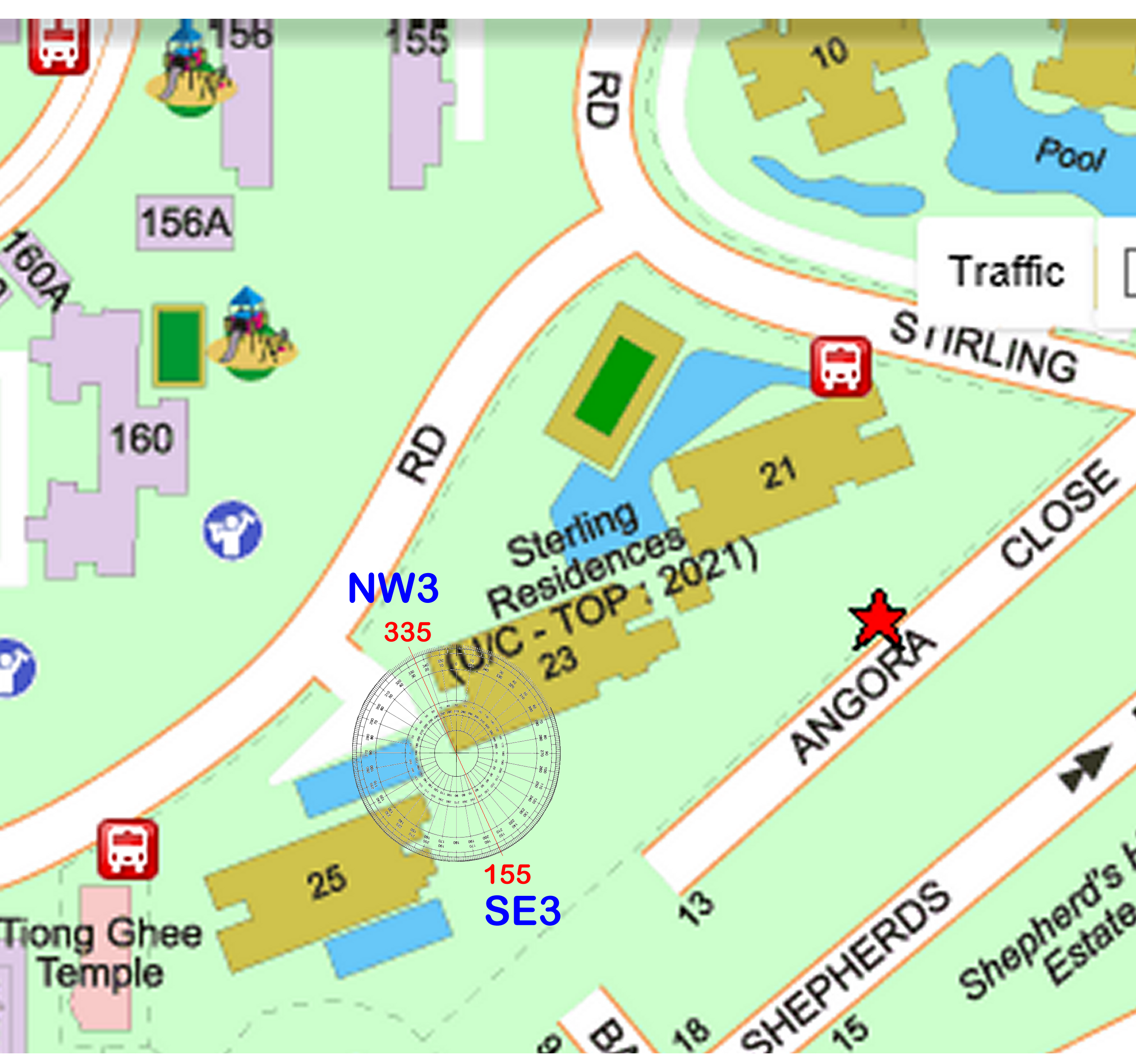 August 22, 20187 yr Author Staff Case Study: Can the site plan of Stirling Residences be relied upon to prepare the Flying Star Feng Shui charts? 1. The expected date of TOP is in 2022. Thus this development is under Period 8. 2. Based on the Sales brochure, the development either have stacks/unit facing NW3 or SE3. 3. I made a comparison using streetdirectory.com and found that the compass readings were 335 degrees and 155 degrees respectively. 3.1. The good news is that there is just a 2 degrees difference between the Sales brochure's North compass reading with the street directory. 3.2. Good news is that both are consistent with Period 8 Flying Stars NW3 and SE3 facing.