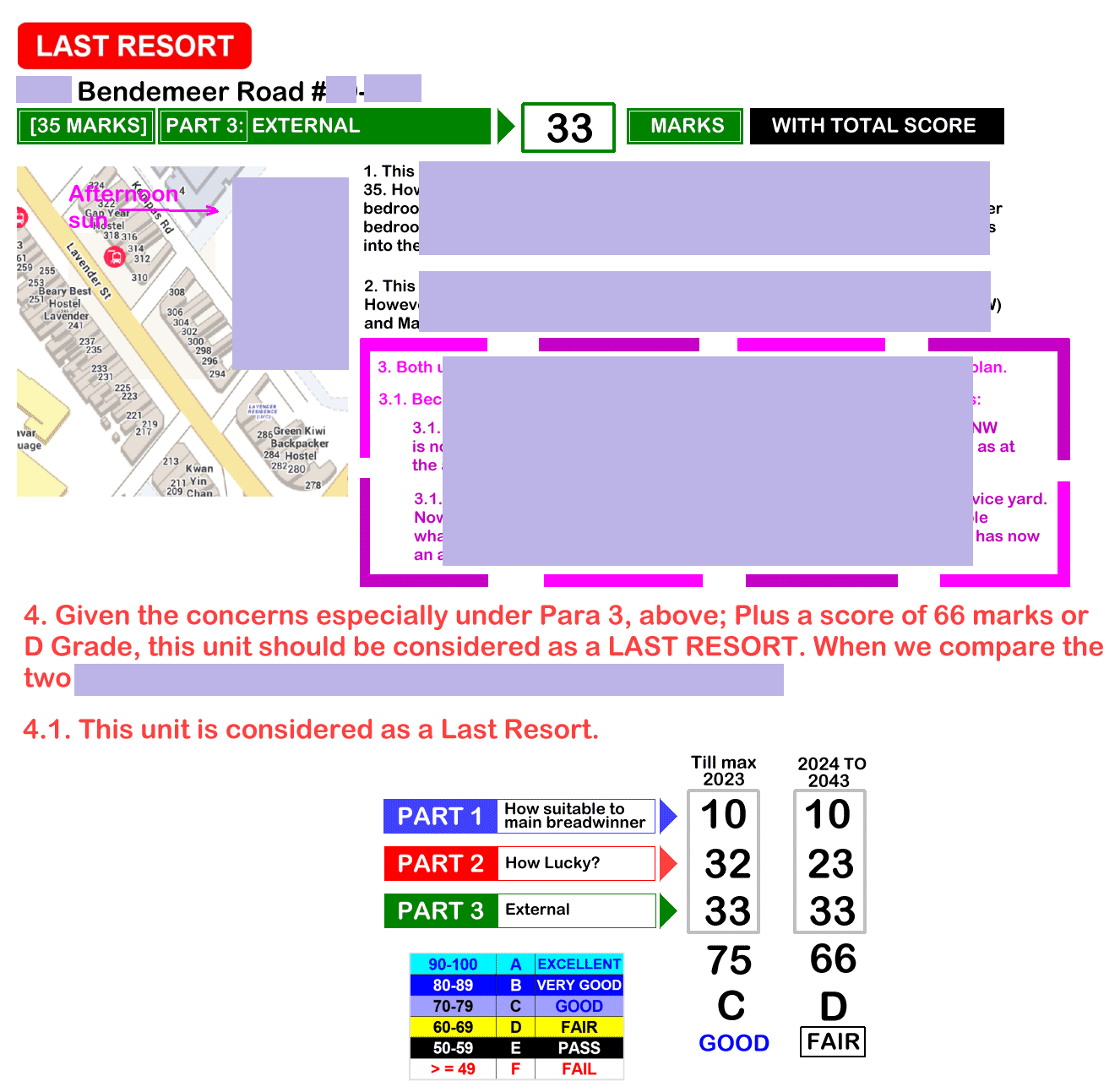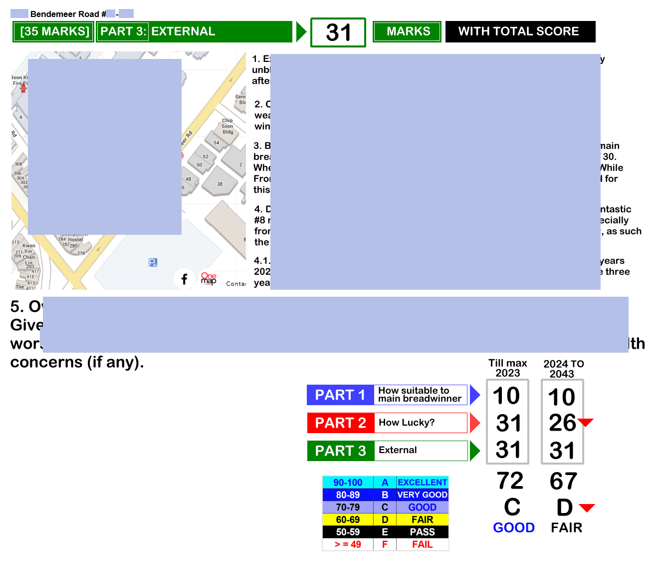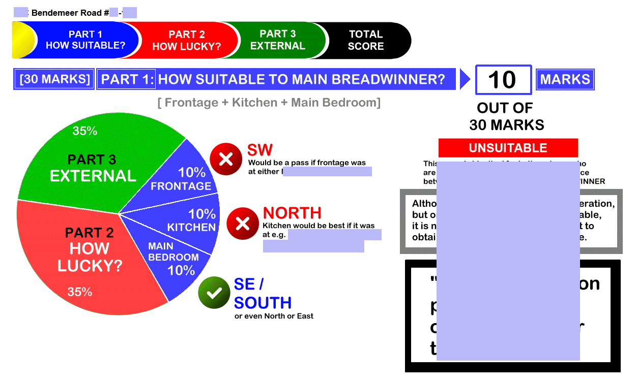 June 7, 20232 yr Author Staff How Suitable is the Unit? Page 1 of 3 = How suitable is the unit - Frontage, Kitchen & Main Bedroom? [30 marks] Page 2 of 3 = How is the luck of the Interior Feng Shui of this unit? [35 marks] Page 3 of 3 = External Feng Shui luck? [35 marks] + Overall score/grade [Total = 100 marks]. Sample 1: This Stack at HDB Bendemeer Light has health concerns, today