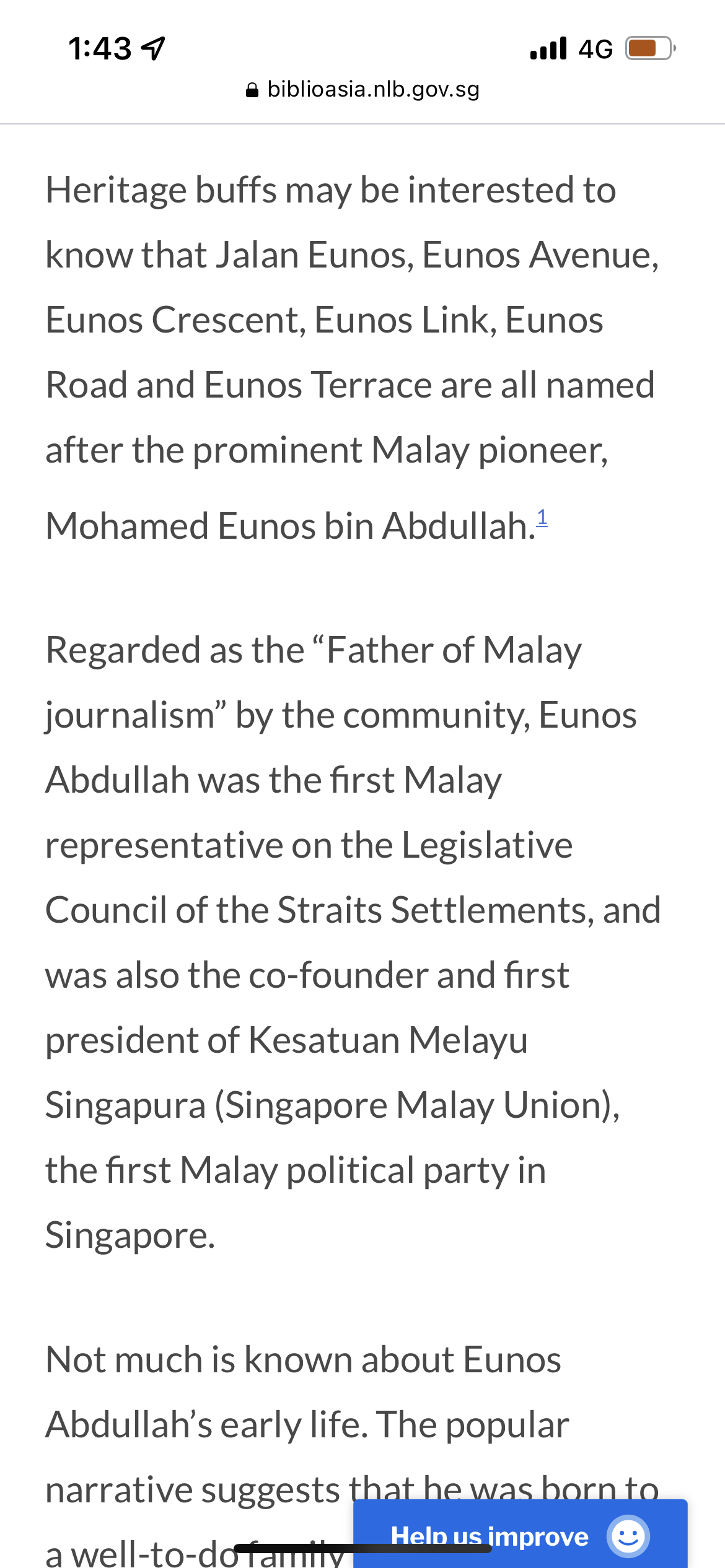 July 22, 20223 yr Author Staff Do you live in Eunos? Source & Credit: Mohamed Eunos Abdullah: The Father of Malay Journalism. The Eunos area in the east of Singapore is named after this pioneer.