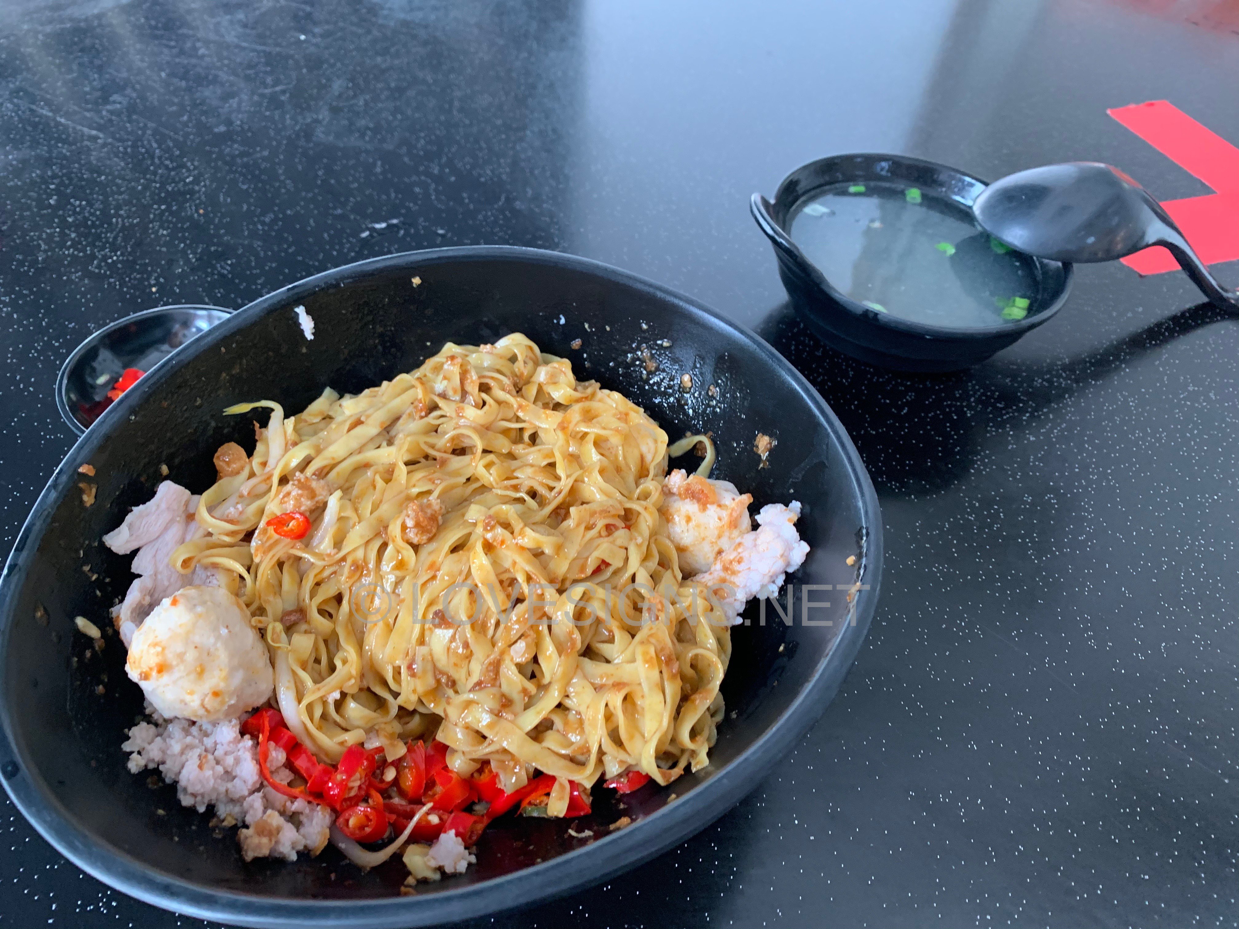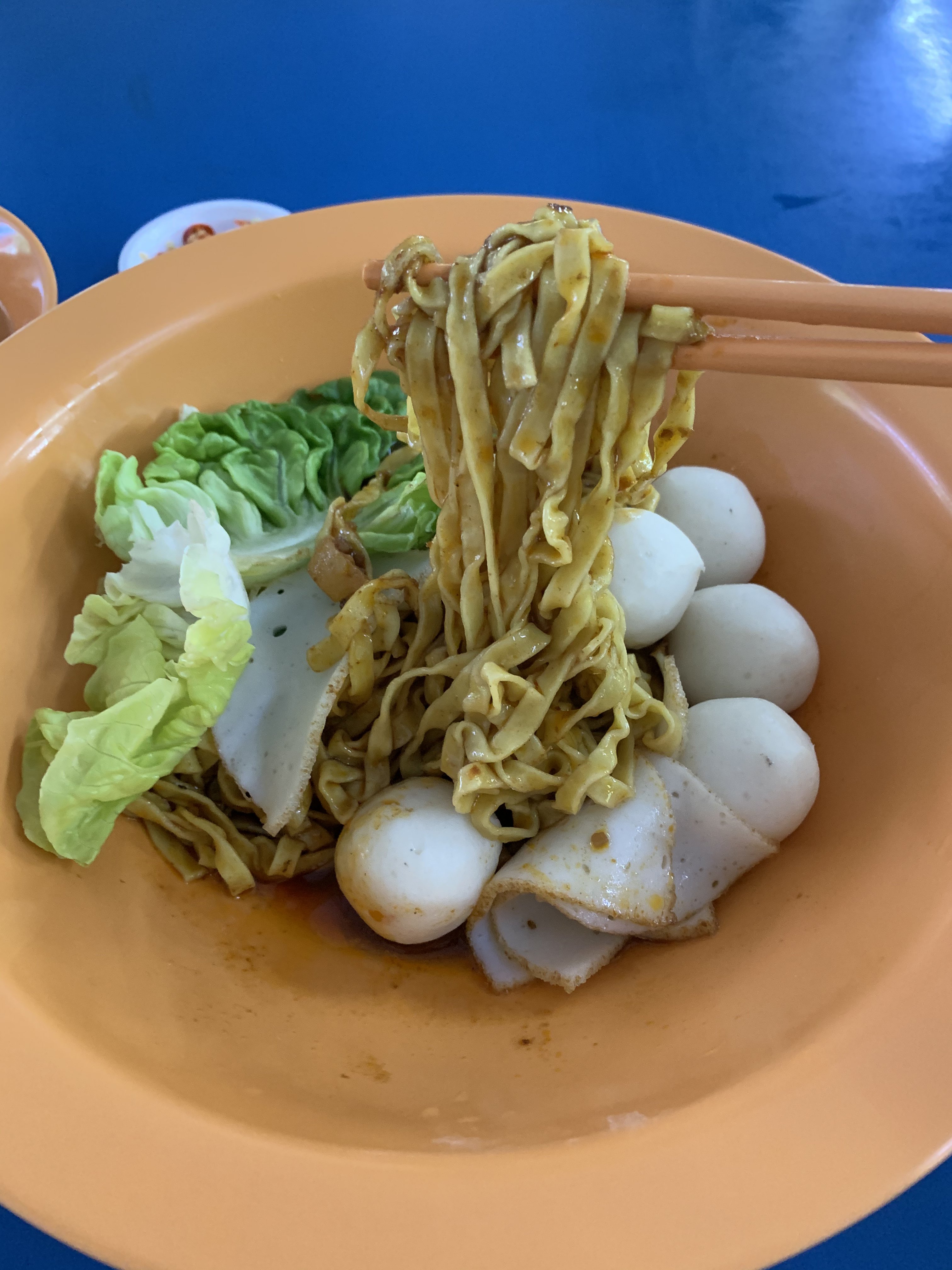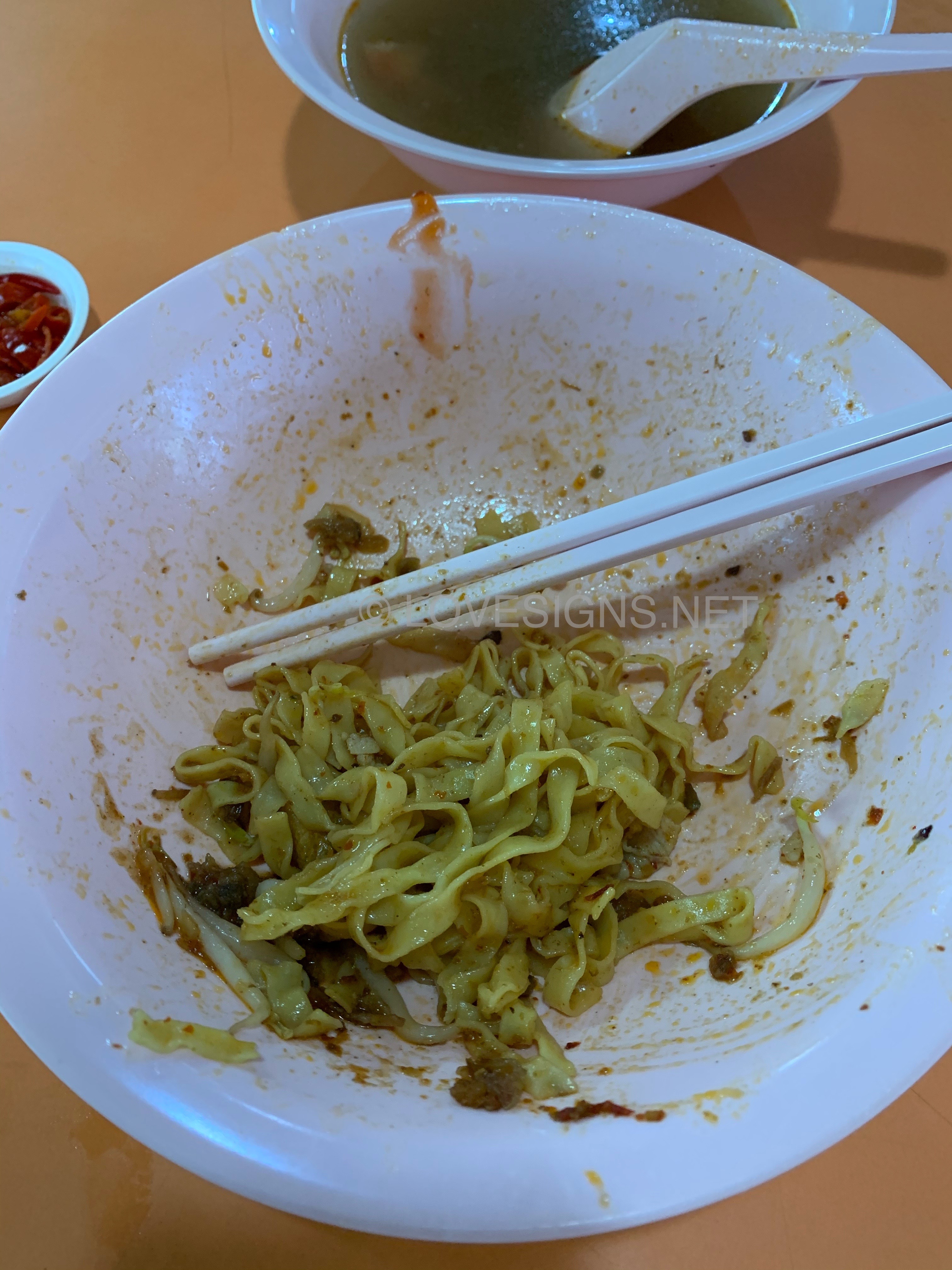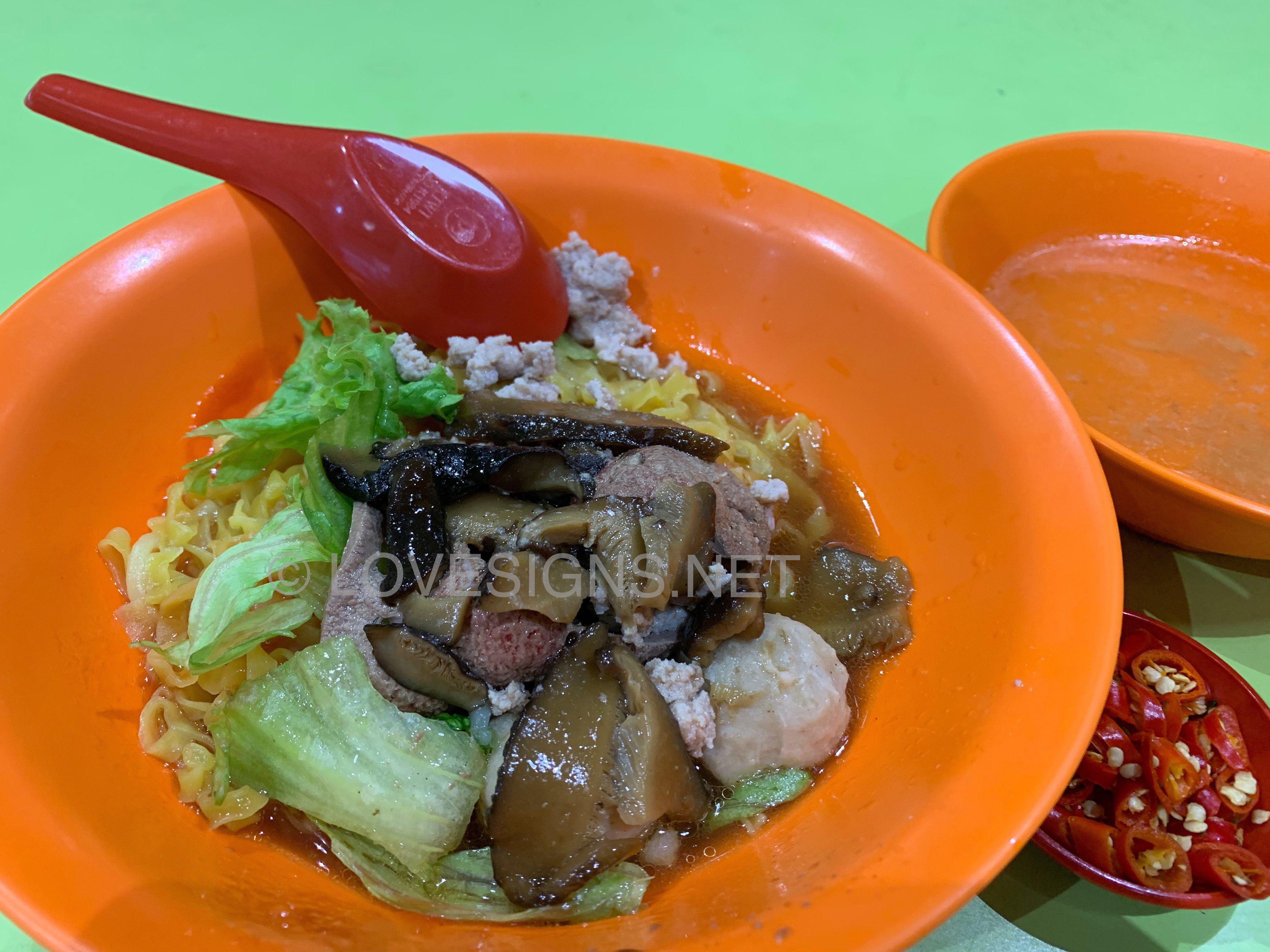 January 6, 20206 yr Author Staff 1. Yong Seng Teochew Mee at Block 105 #02-47 Hougang Avenue 1 Market/Food Centre. 2. Probably the best that I ever tasted! At $4/- basic bowl. 3. Generous amounts of chilli. Sauce well balanced. Very unique fine (flat) noodles...chewy, not sticky. But no fish maw found in the $4/- bowl... Did not order their Laksa, although seen someone buying it. Looks nice. But too unhealthy for me... Another popular stall is also on the same facing and level. Nearby to the open air wash basins.