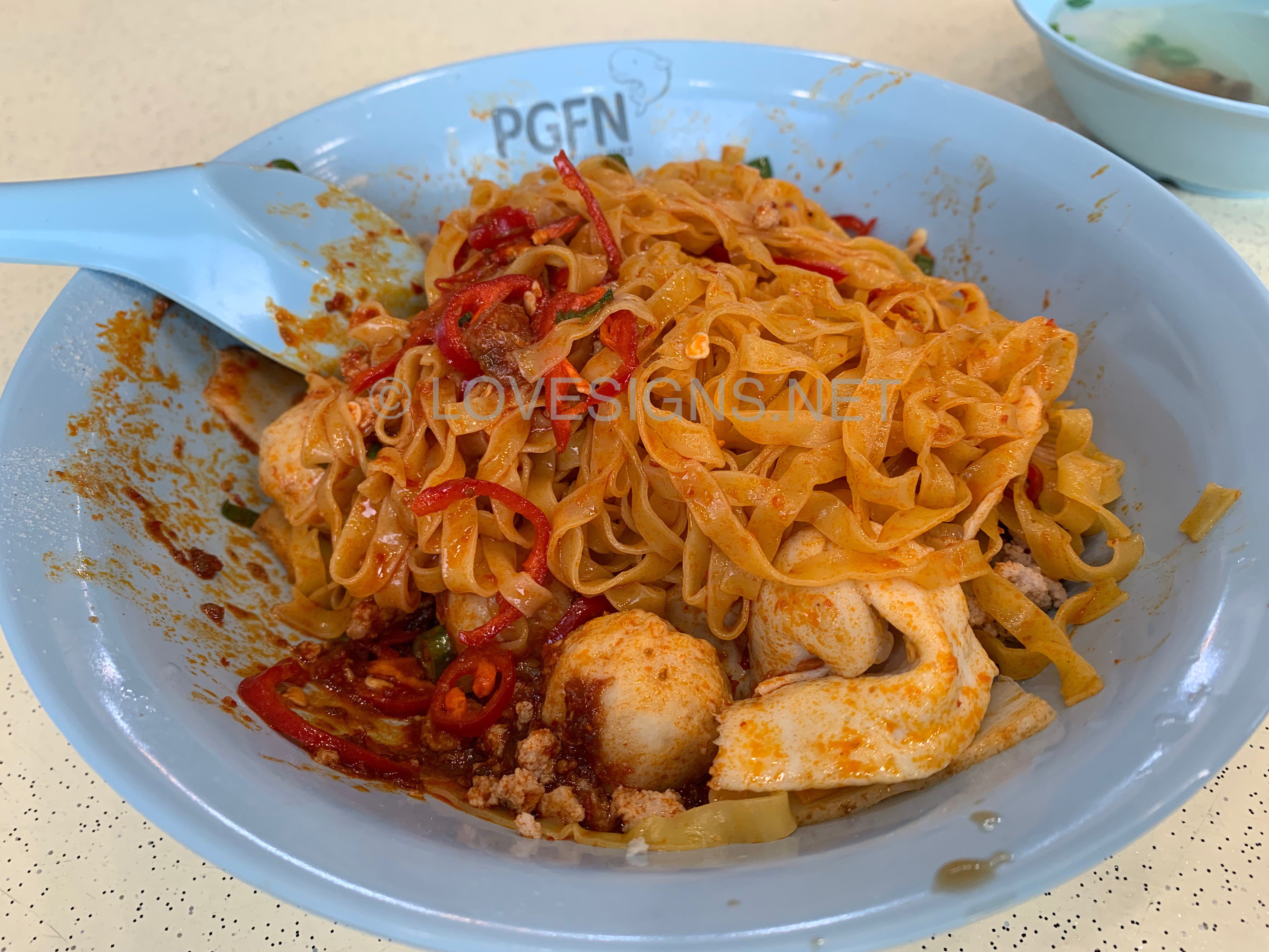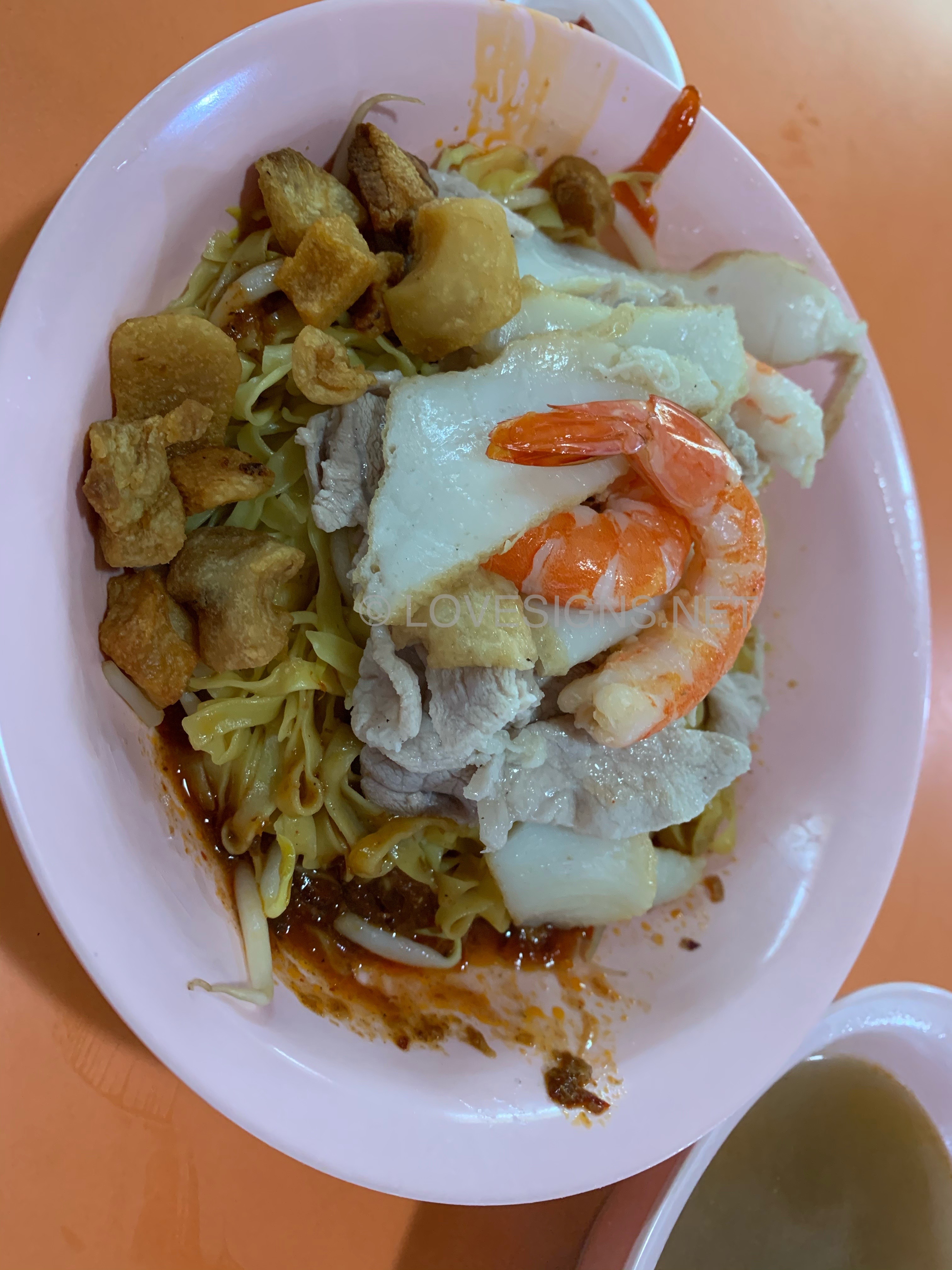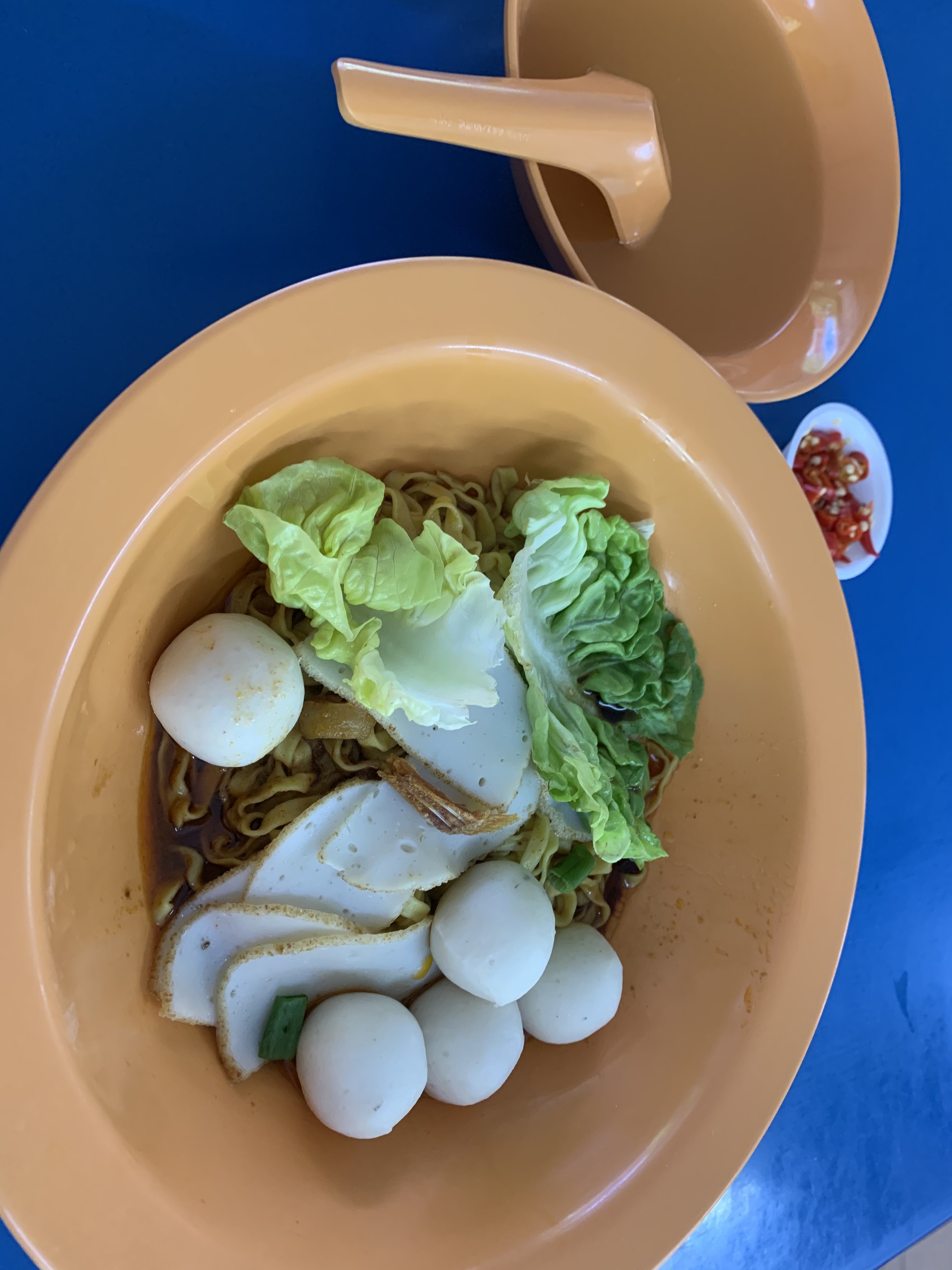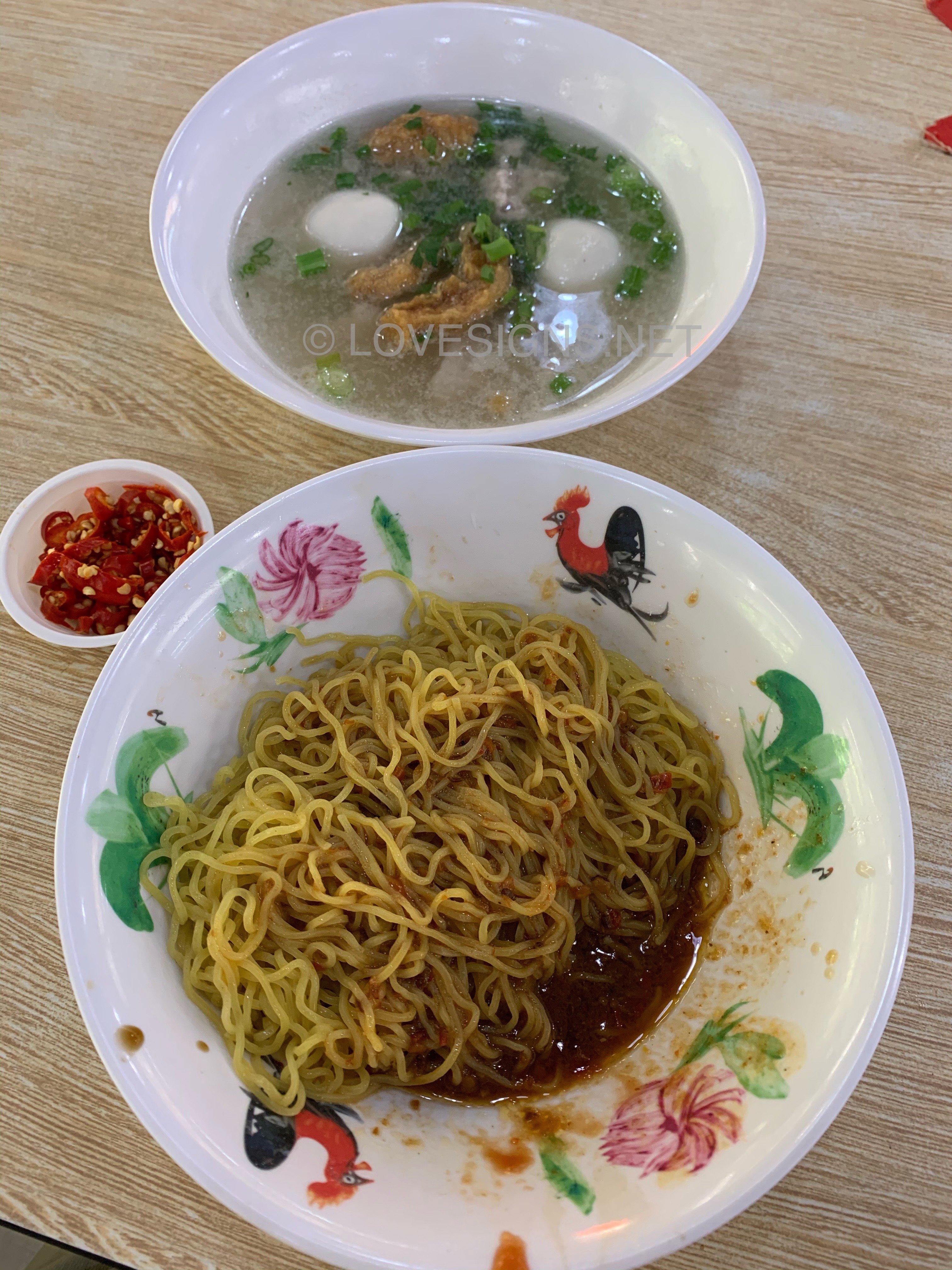 January 6, 20206 yr Author Staff 1. Yong Seng Teochew Mee at Block 105 #02-47 Hougang Avenue 1 Market/Food Centre. 2. Probably the best that I ever tasted! At $4/- basic bowl. 3. Generous amounts of chilli. Sauce well balanced. Very unique fine (flat) noodles...chewy, not sticky. But no fish maw found in the $4/- bowl... Did not order their Laksa, although seen someone buying it. Looks nice. But too unhealthy for me... Another popular stall is also on the same facing and level. Nearby to the open air wash basins.