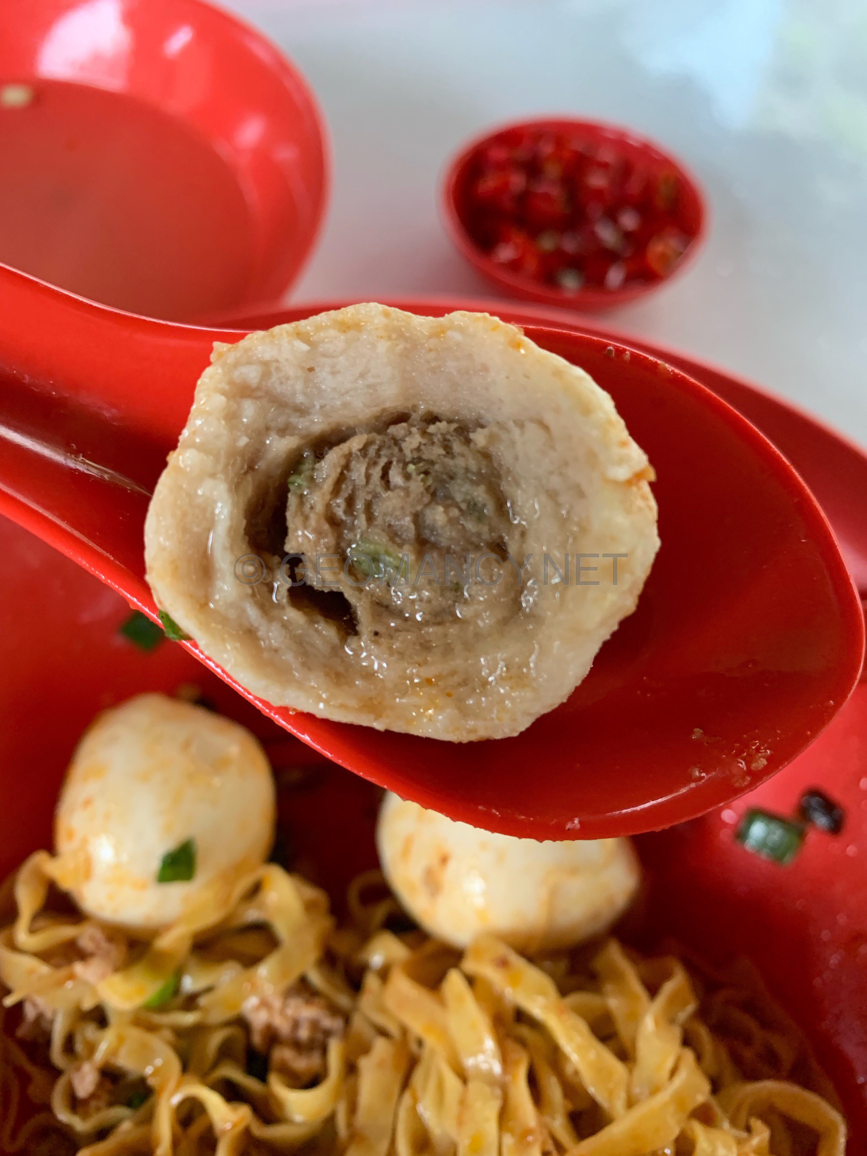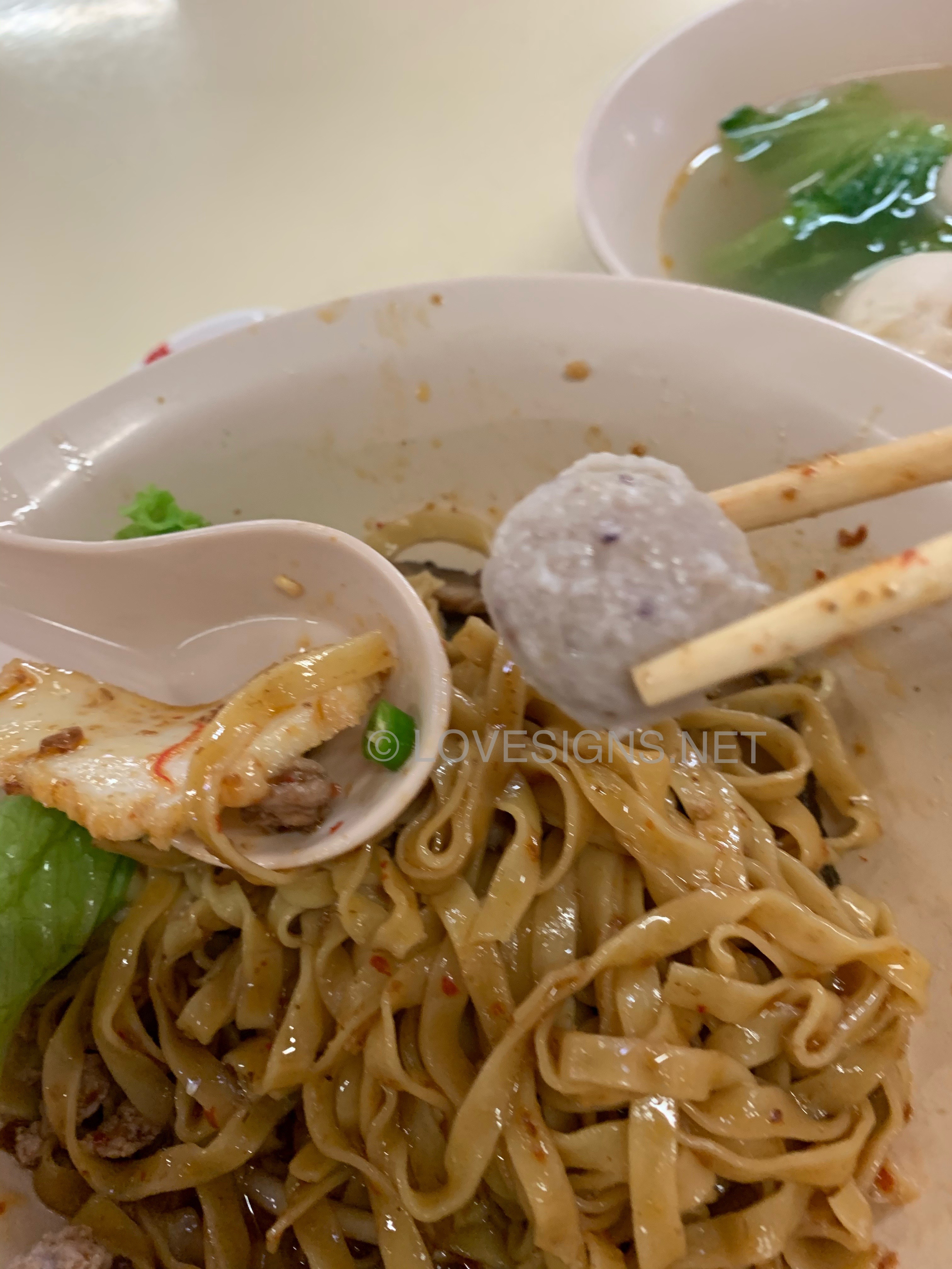 May 1, 20196 yr Author Staff Another nice Mee Pok within Bukit Panjang Community Club: With fish maw or fish bladder and a nice fish ball within it a tender juicy meat ball also. Juicy meat ball within a fish ball... great! Actual location as shown by the red arrow...
