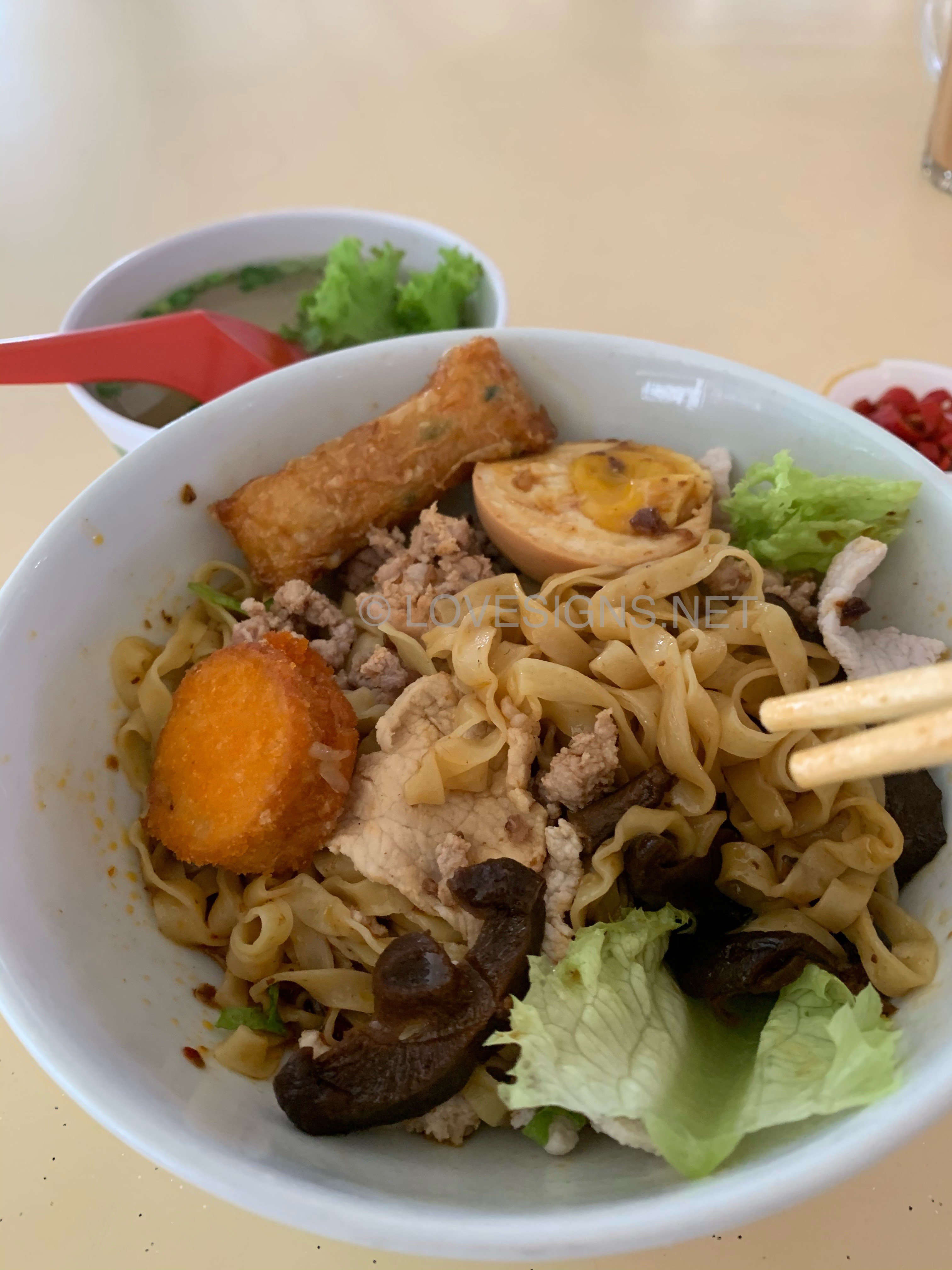 Posted July 28, 20187 yr Staff They only sell one variety of noodles = Mee Pok The food is light but with a balanced flavour. Their cheapest $5.50 contains a unique one slice of rehydrated fish maw and a moist braised-poached melt-in the mouth half-an-egg. Portions are reasonable..but nice. Unfortunately.. one complaint is that their chilli is dull.. don't give that kind-of-kick!