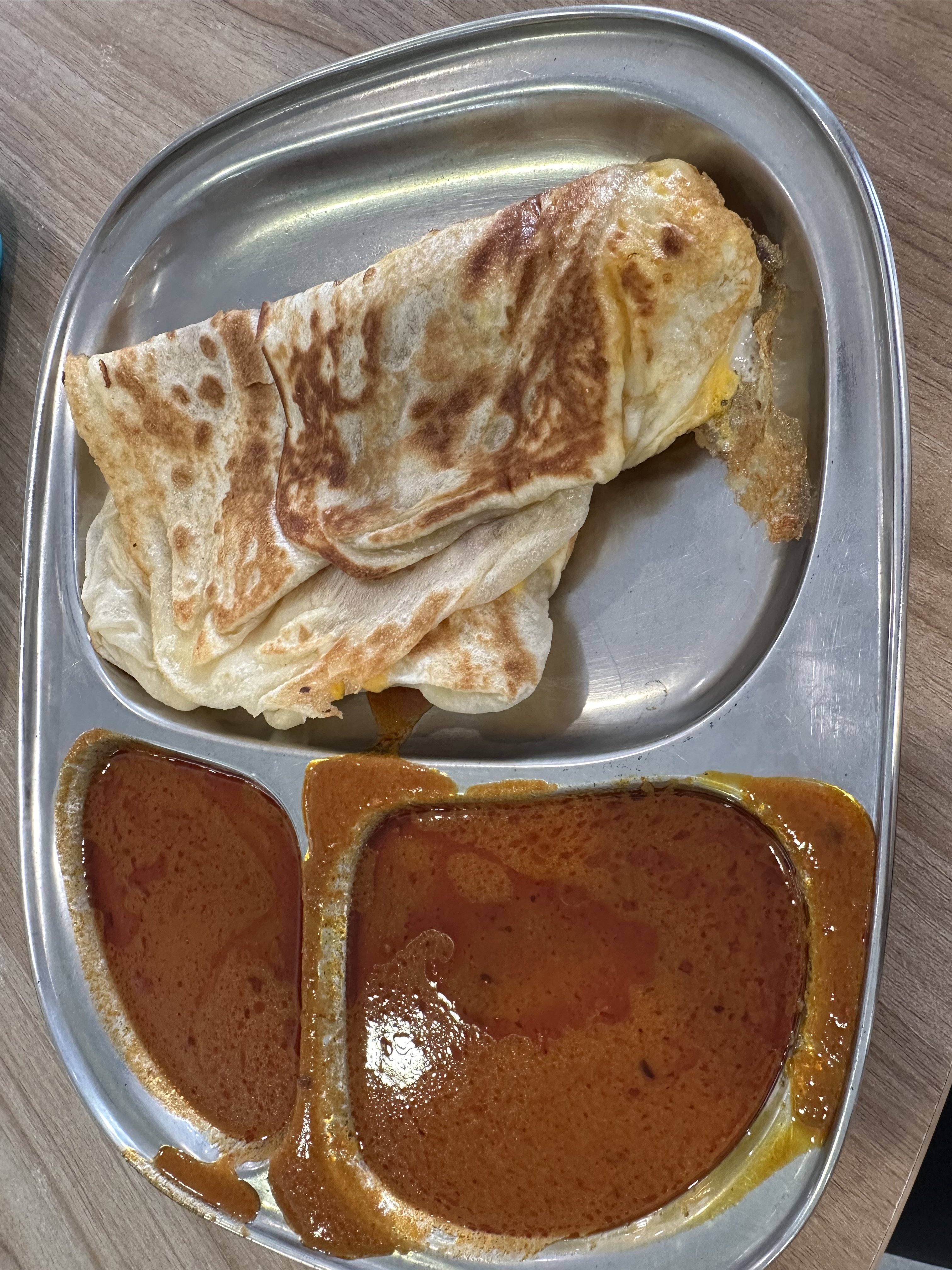 May 17, 20241 yr Author Staff 2 pieces plan for a total of $3.00. Gravy is light and not salty. Acceptable freshly made prata pieces.