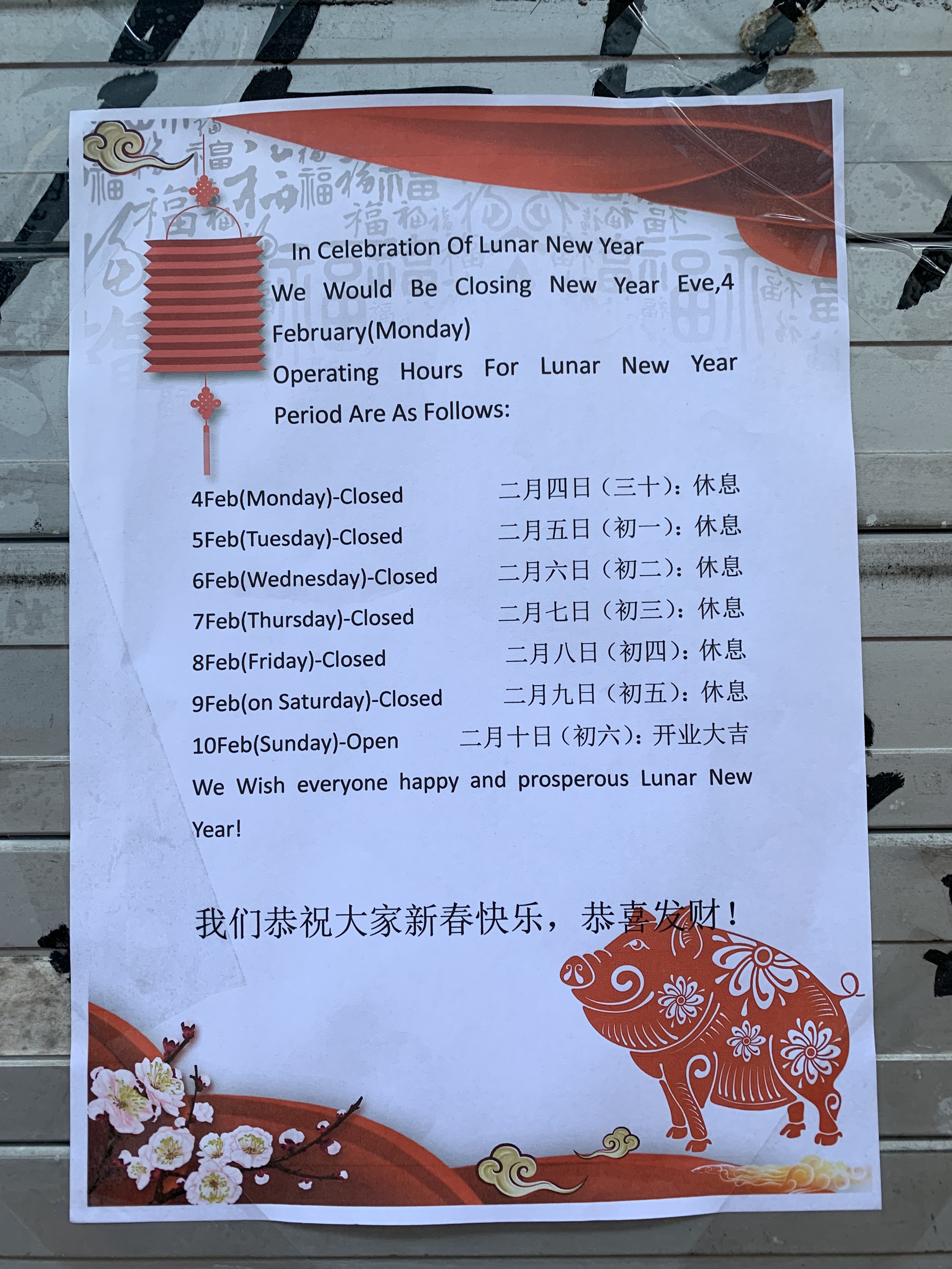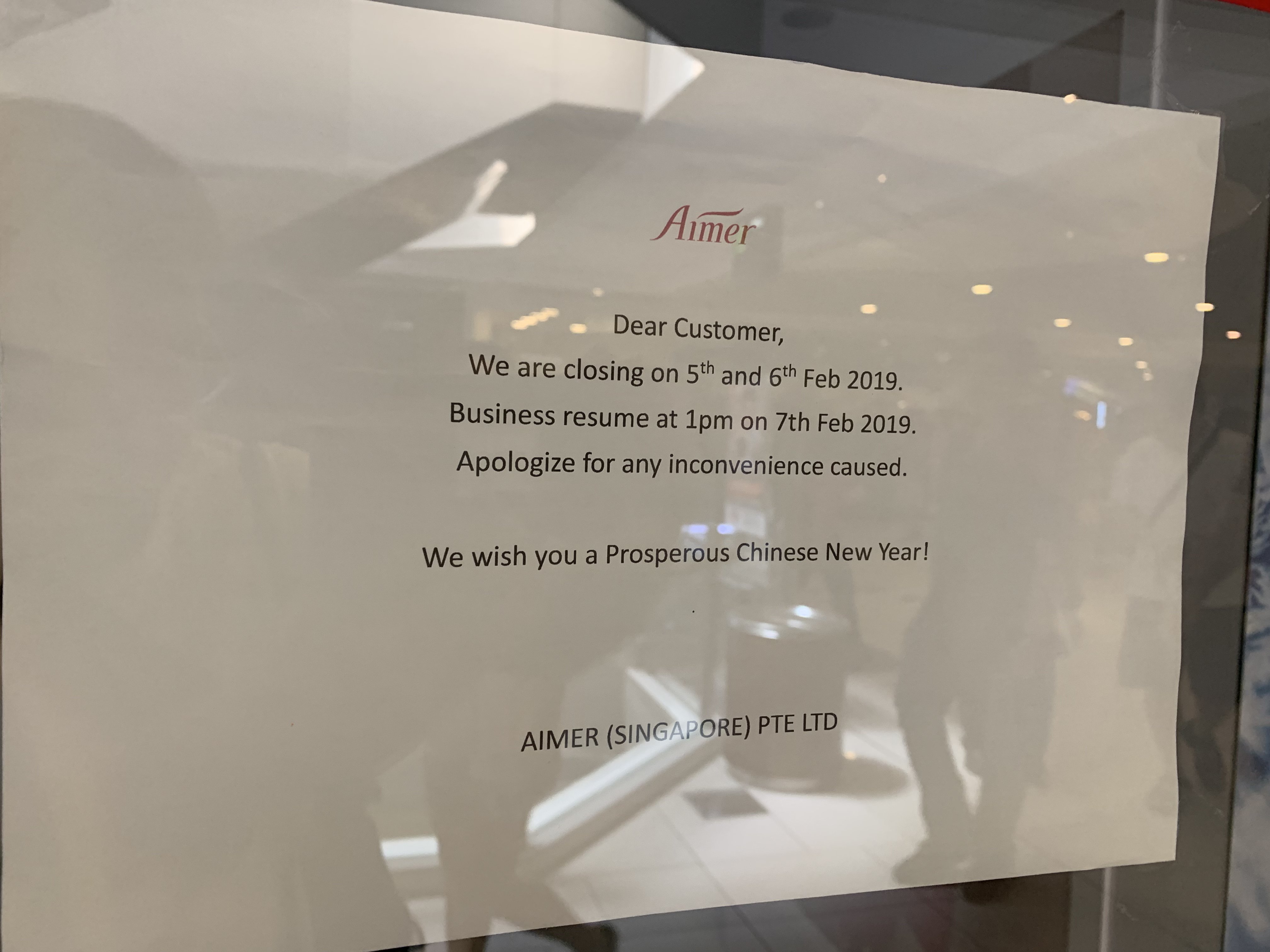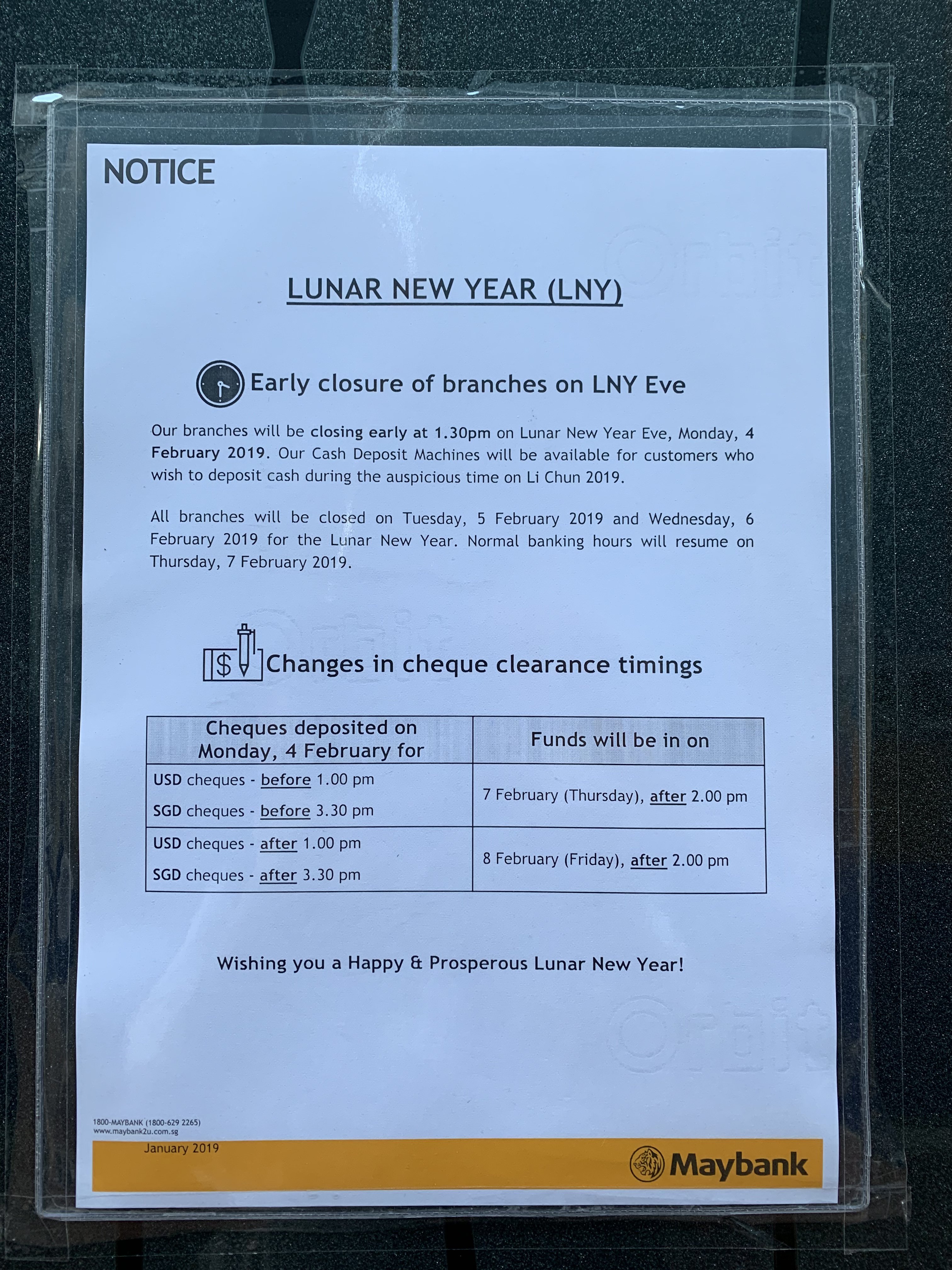 We will be closed at GMT +8 1200Hrs on the eve of Chinese New Year and on 5th Februrary 2019 and process on-line transactions from 6th February 2019.