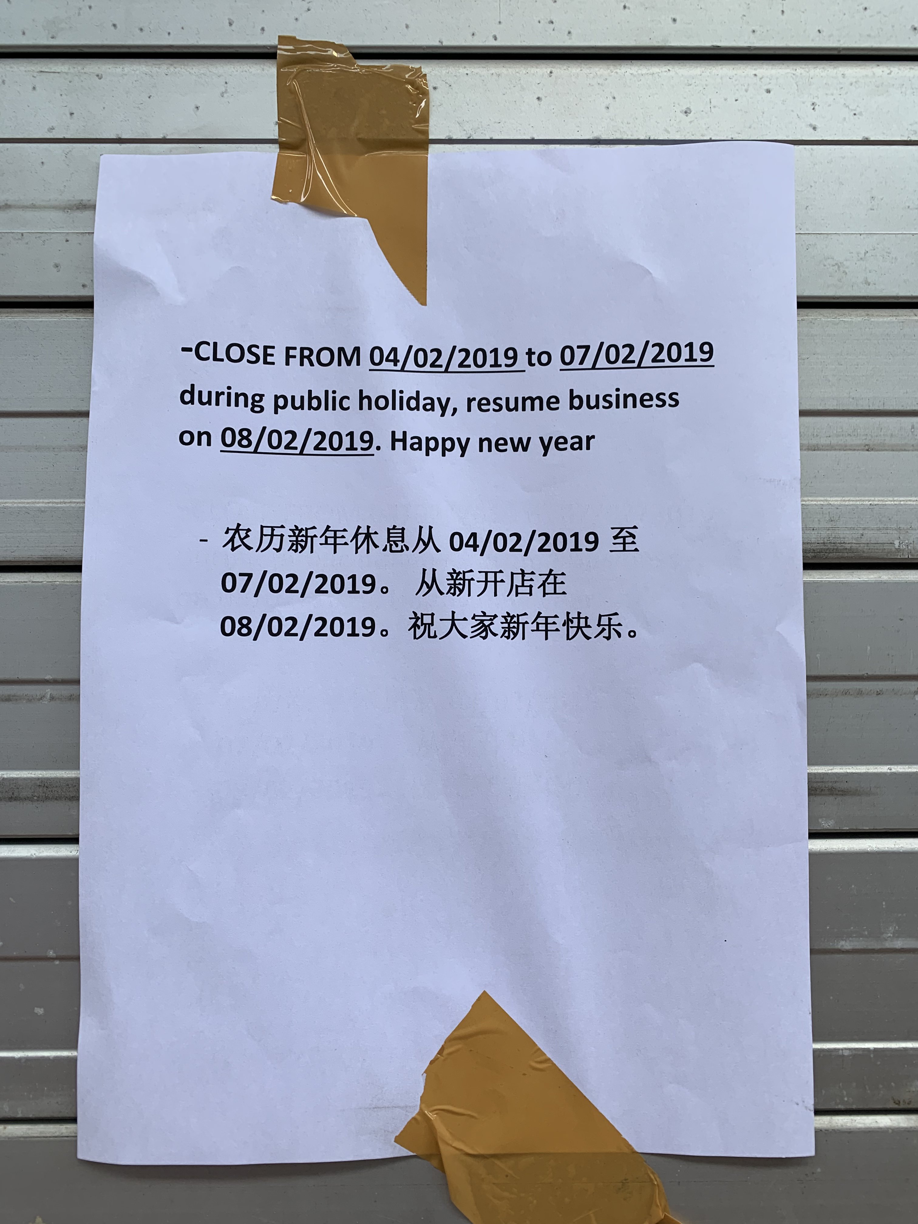 Note: For business such as retail services: 10th February 2019 applies also. Just that offices don't operate on that day = a Sunday.