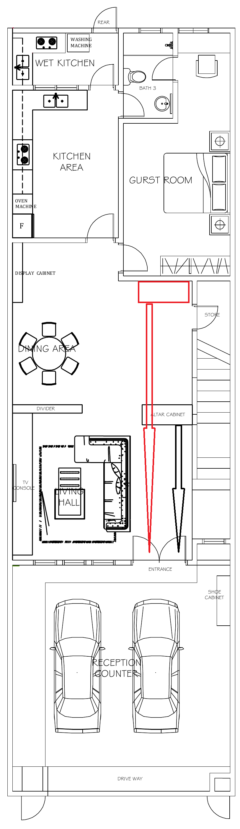 January 9, 20197 yr Staff Thanks for the sketch. 1. You wrote: "The altar will be praying to Guan Yin and Guan Yu." Reply 1: Please note that traditionally one is suppose to pray to ODD number of deities or gods. Not TWO (2). 2. Normally if an Altar is to face the main entrance door; it is highly unusual in a HOME to place it so far back as per your RED outline.