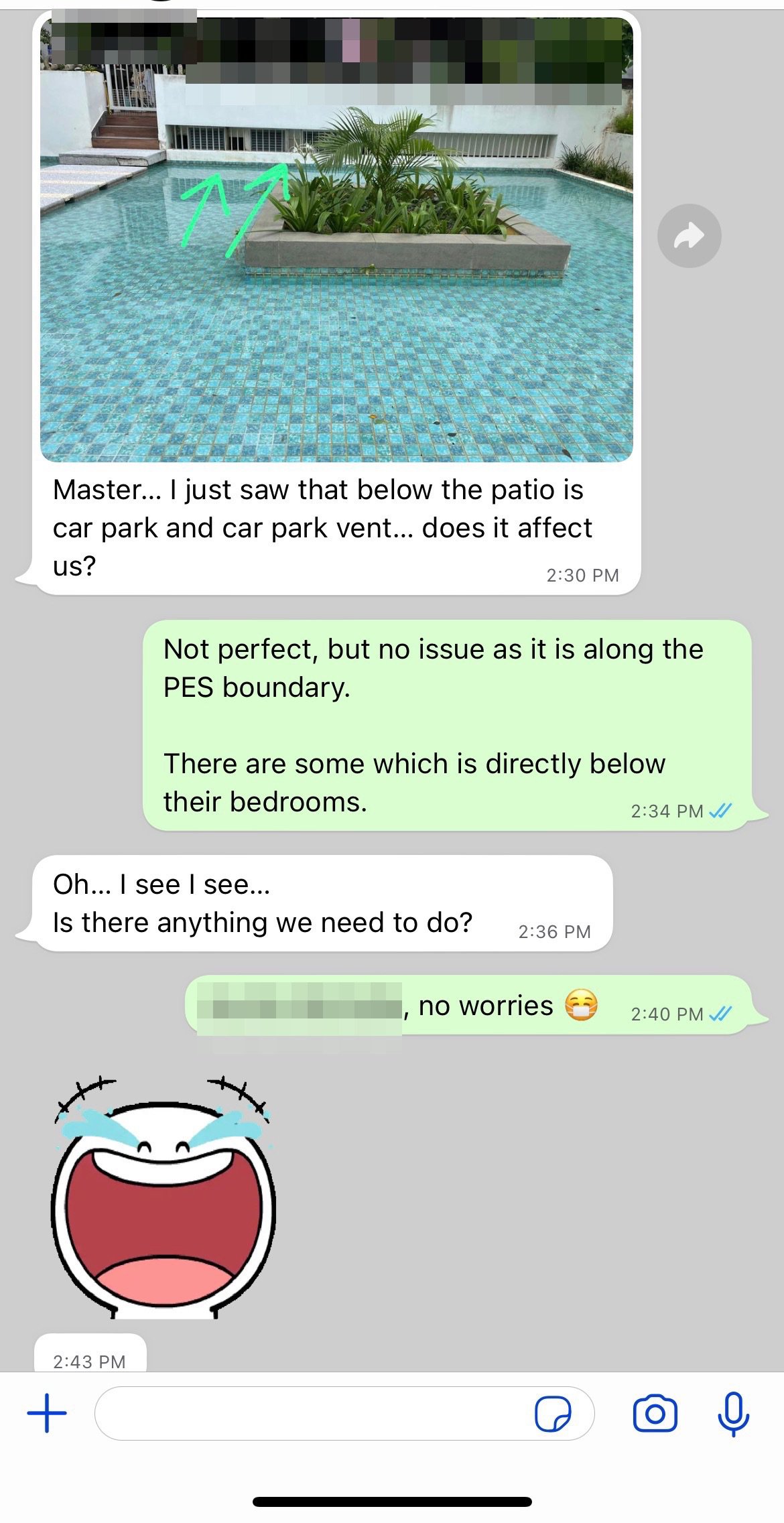 May 19, 20223 yr Author Staff Master… I just saw that below the patio is car park and car park vent… does it affect us? Not perfect, but no issue as it is along the PES boundary. There are some which is directly below their bedrooms.