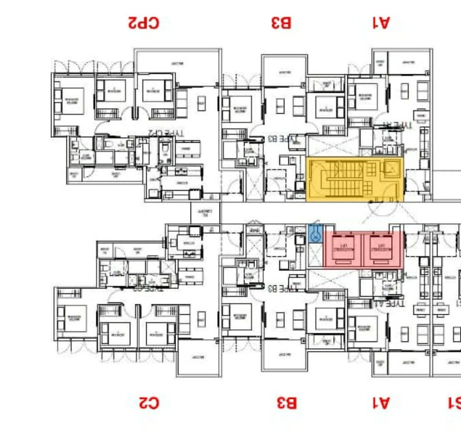 September 8, 20196 yr Author Staff Case Study 3: This development does not have internal rubbish bins in each of the unit. Where is the common rubbish bin(s) located on each floor? [Majority of ECs/condos only have a common bin. Some developments e.g. by CDL have both a common and recycle] 1. A tell tale sign if a unit has an internal rubbish bin is something similar to this icon:- or 2. All layout plans for this development does not have this somewhere close to the kitchen or within the yard. 3. This implies that the shared common rubbish bin(s) are located somewhere around the common corridor of each level. 4. My advise is before signing the dotted line, get your respective estate agent to give you a copy and/or confirm that the common bin is not beside your potential unit's main door and or facing the unit. 5. For example, recently a client requested from her agent a copy of the entire under construction condo block prior to the purchase of a unit there. The common rubbish chute is highlighed in BLUE. While the two lifts in PINK/RED. And the staircase cum bomb shelter in orange:- 6. Often, if the agent wants your commission, they will always oblige with this request. But if for any reason, that agent does not want to do so, unfortunately, for her, seek out another one. No choice. As a rubbish bin especially next to the main door may become a liability (besides Feng Shui consideration) for futher resale value as one of the considerations, also.