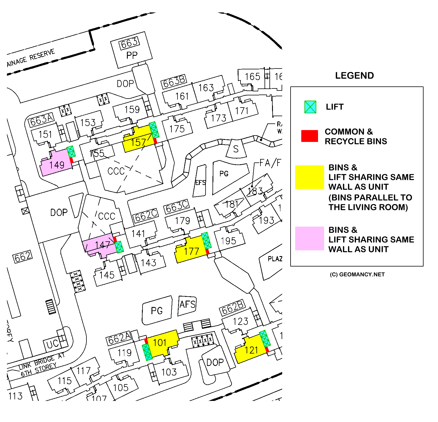 October 16, 20196 yr Author Staff Case Study 5: Badly planned Common Bin chutes x2 Graphic illustration of stacks 149 and 157 and the potential "perfume" smells coming from the common bin chute lobbies.. Erh.. durian (shell)... smell... anyone... How about.. the cleaners.. (some) have a habit of using some heavy duty antiseptic type of cleaning liquid to clean the area. And sometimes, the smell permeates into one's unit. Huh? A prisoner of one's home. Such that "I need to close my windows to avoid THAT SMELL?" Got it, get it? 1. Please see stacks highlighted in YELLOW: 101, 121, 157 and 177 2. Did you notice that the two bin chutes (common and recycle) is next to or very close to the or rather beside the living room windows? 2.1. How's that for good or favourable qi? Yucks! 2.2. Stacks 147 and 149 also share similar characterists just that their two bin chutes are slightly further inwards. Frankly, just as bad. 2.3. Even if it one claim that it may not affect the Feng Shui, given that the area is well managed by Town Council people; still there can be a stigma attached to this. 2.4. Thus often, it may truly affect the re-sale value of the unit! What do you think? 3. If in doubt, these stacks/units should be "your last resort".