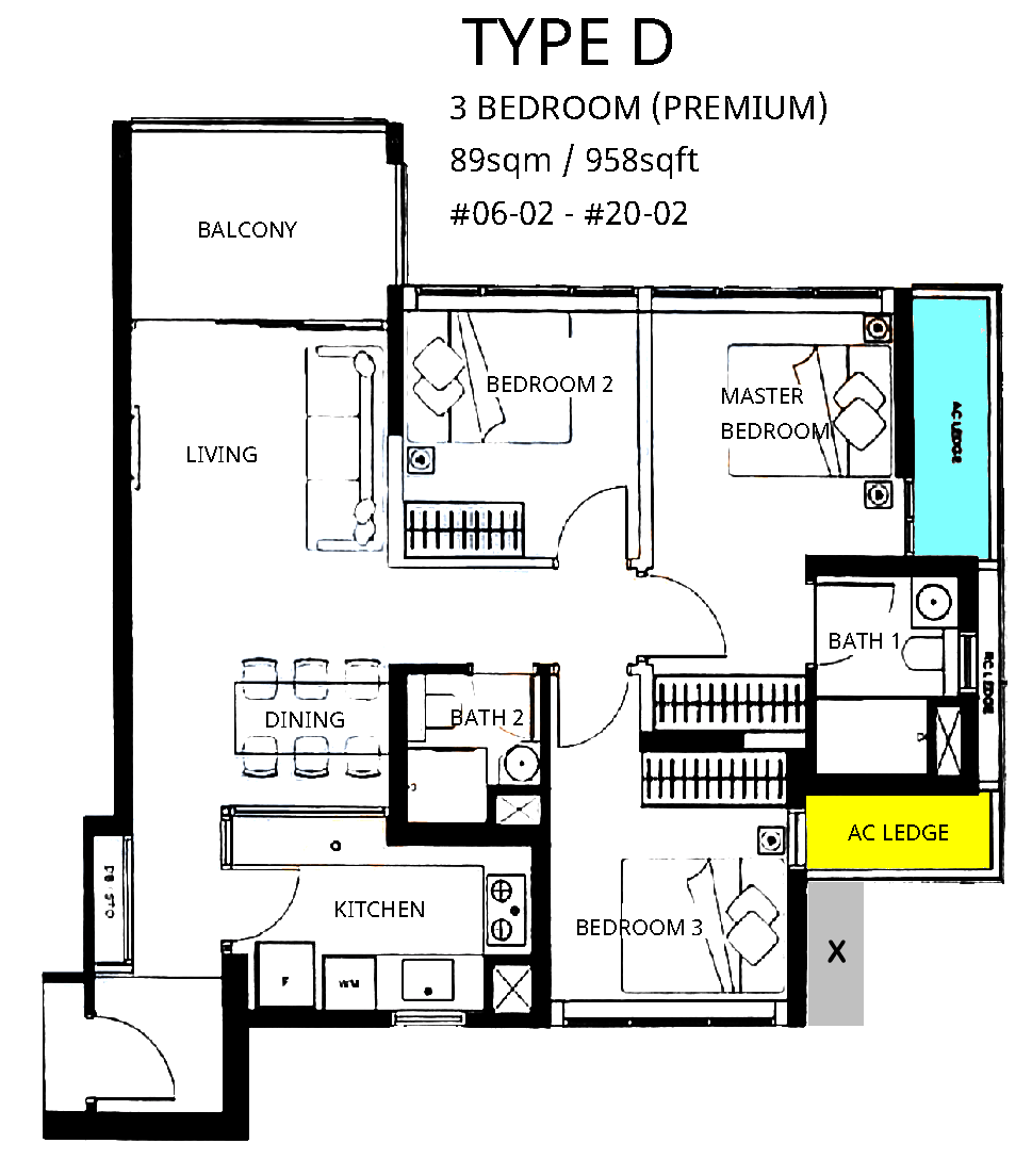 August 31, 20205 yr Author Staff Case Study 8: Stack #02 - Why need TWO air-con ledges? 1. There is a preference to have just a single air-con ledge for each unit under Shapes and Forms Feng Shui. 1.1. This is because, in many situations, firstly, the air-con compressors give off heated air-flow + vibrations. Not exactly healthly consideration under Feng Shui. 1.2. Secondly, take a look at many air-con ledges and one can find bird droppings and/or dusts/dirt within such air-con ledges especially at the Master Bedroom area. 2. For this unit, ideally, if one were to choose a location for an air-con ledge, it should be the one located beside Bath 1 / partial Bedroom 3. 3. The architect / planner should perhaps have redesigned the YELLOW layout of the air-con ledge to accomodate the necessary number of air-con compressor units. And do away with the one in BLUE at the Master Bedroom.