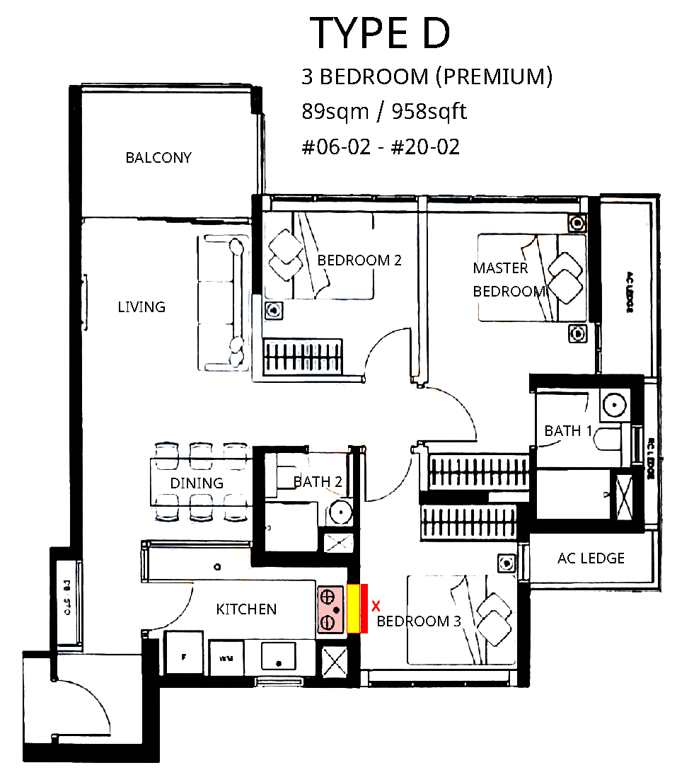 August 31, 20205 yr Author Staff Case Study 3: Stack 02 and Stove sharing same wall as the bedroom 3 1. It is highly uncommon in a condo unit to have the stove sharing the same wall as a bedroom. 2. In the past, some HDB layouts especially those of the 1990's may have similar situations where it could be possible for the stove to share the same wall as the master bedroom bed-head. 3. Nevertheless, generally, there is nothing to fault the architect in this stack #02. 3.1. This is because in normal circumstances, most would sleep away from the bedroom door. 3.2. However, nowadays, some may install a platform bed and, here, the dynamic changes as either some want the bed-head at the stove side or 3.3. Some read Feng Shui books or get advice to sleep facing their good directions.