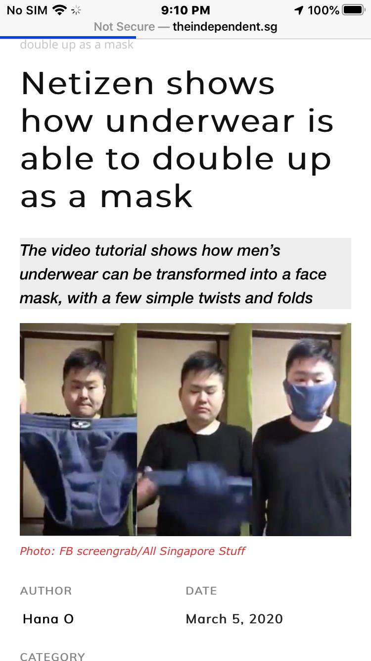 March 30, 20205 yr Author Staff On 29.3.2020: Was trying to encourage client to wear mask. Did not expect the client to say this...! Oh Dear! Aiyoh!