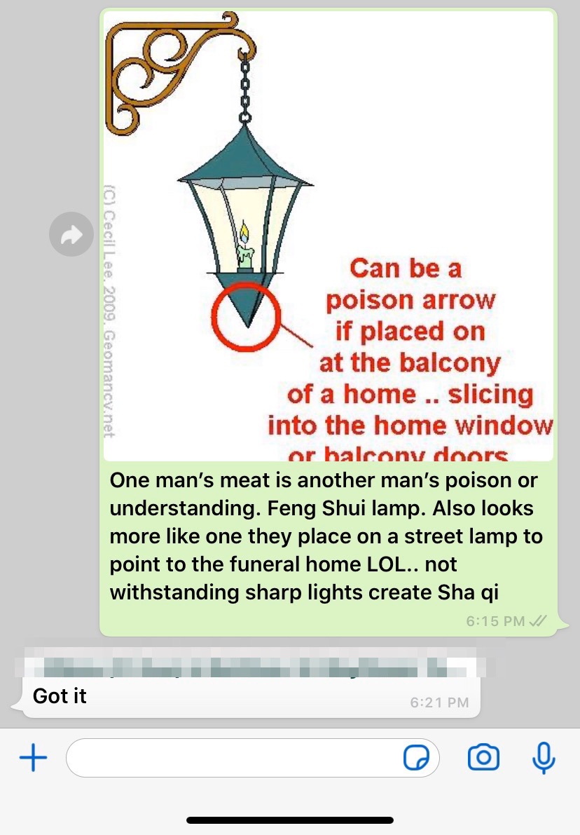 Posted March 14, 20205 yr Staff Hi Cecil, do we need to install such fengshui light at the gate? Reply: Feng Shui does not micro manage one's life. Until everything seems to be a Feng Shui thing? One man’s meat is another man’s poison or understanding. Feng Shui lamp. Also looks more like one they place on a street lamp to point to the funeral home LOL.. not withstanding sharp lights create Sha qi