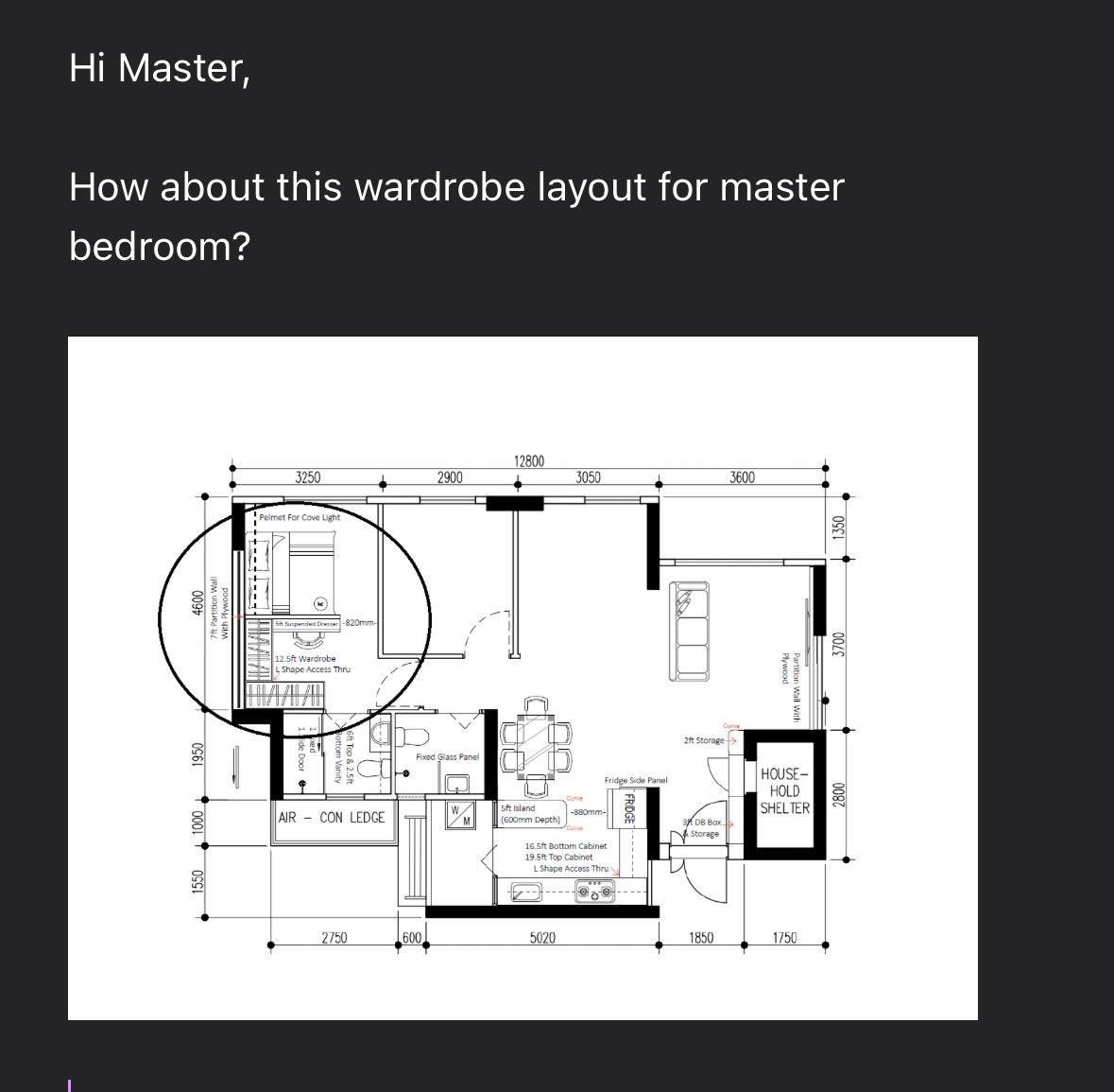 November 1, 20232 yr Staff About Stagnant Qi How about this wardrope layout for master bedroom? The person sleeping at the red area will have stagnant qi Any remedy? What we wanted was a corner to change clothes without disturbing another party sleeping. Thus, having this thought. Alternatively, if it is not as per our preferred layout, can the dressing table with mirror be beside the bedhead? High percentage is due to common sense. Thus so long as this "corner" is well ventilated, it is fine. And yes, try to go less to the toilet - as one needs to crawl up and down the bed.