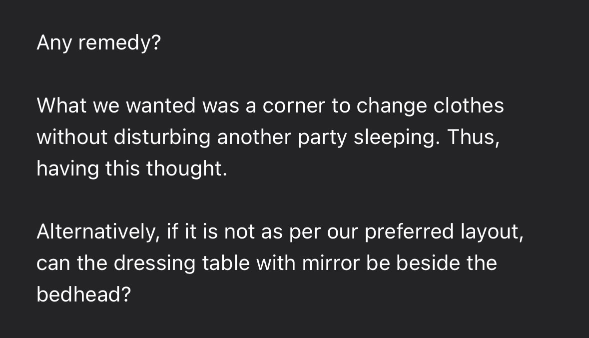 July 12, 20205 yr Author Hello Master Cecil, Thanks for the response. However, can I check, if I remain with the current layout (which is one side of the bed against the wall), in comparison to the proposed layout, which layout would be recommended? Edited July 12, 20205 yr by ksm