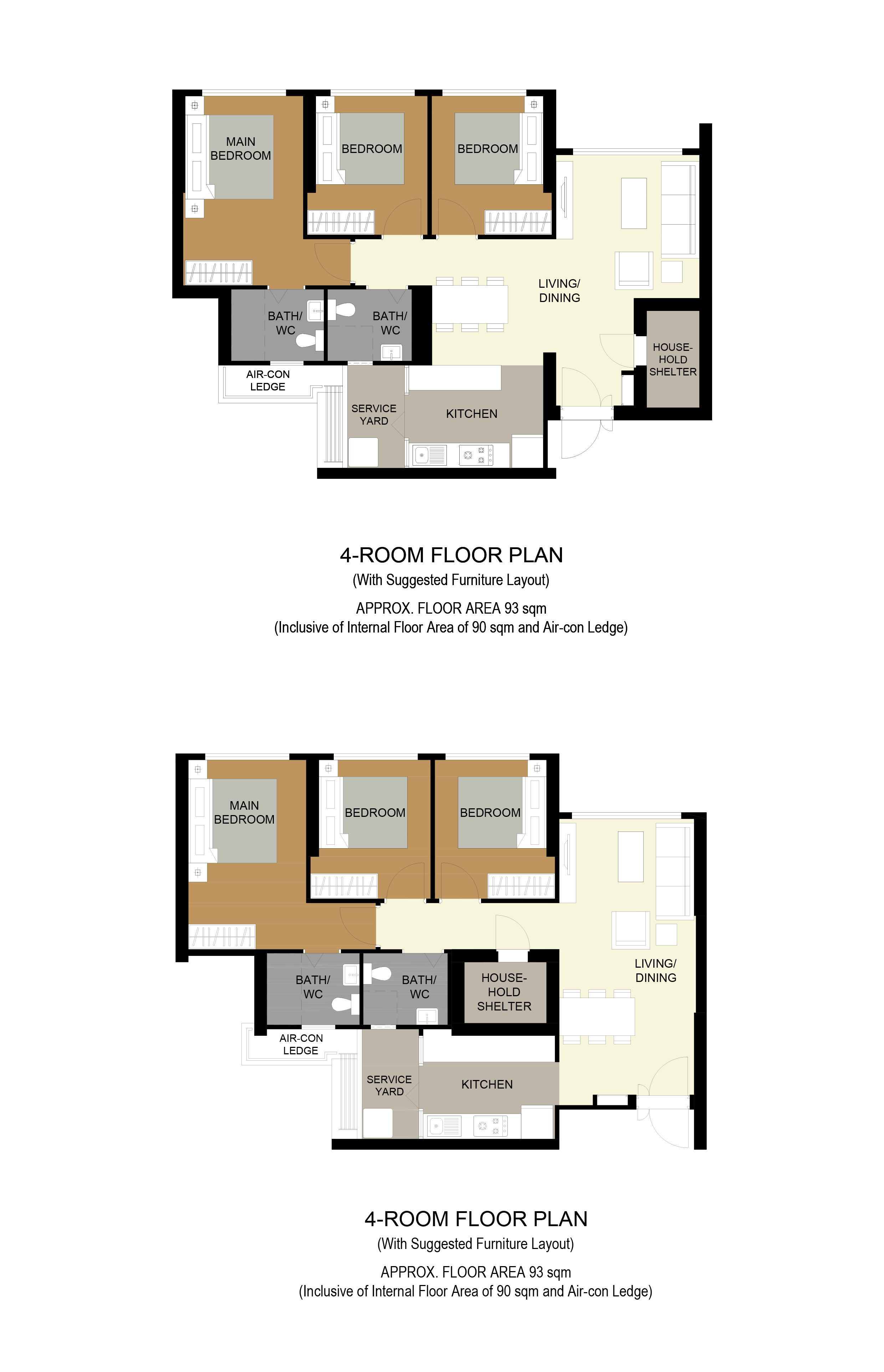 2-room Flexi, 3-, and 4-room flats