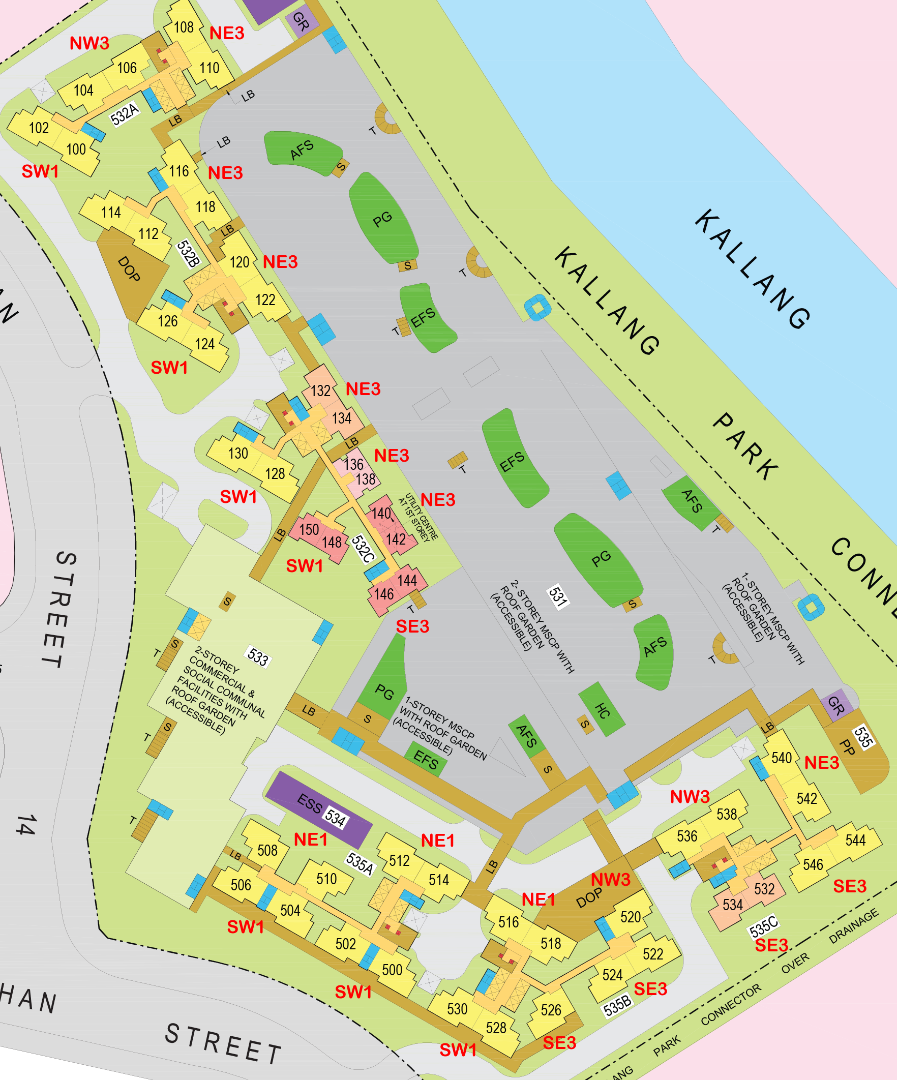 3) UNIT NO 520 (NW3), living & all rooms facing kallang river but main door next to staircase & facing neighbour's main door (UNIT 522 - SE3)