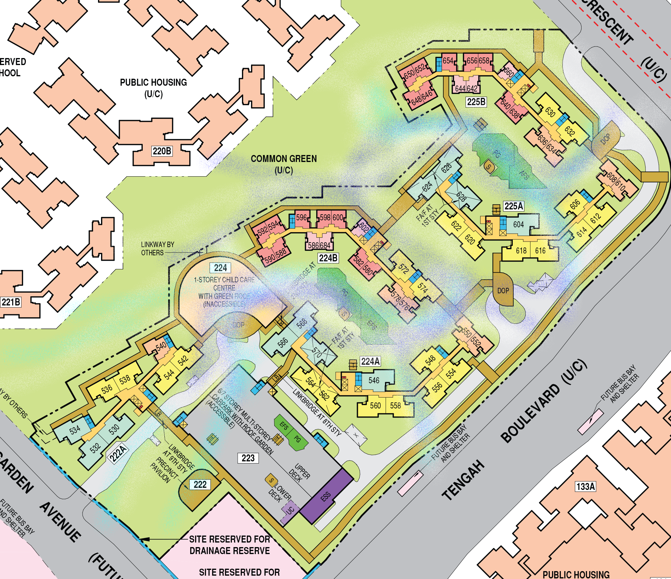 November 17, 20205 yr Author Staff Part 1 of 3: Sales Brochure Information Garden Terrace @ Tengah Bounded by Tengah Garden Avenue, Plantation Crescent, and Tengah Boulevard, Garden Terrace @ Tengah comprises 5 residential blocks ranging from 7 to 16 storeys in height. Garden Terrace @ Tengah offers a series of lushly landscaped courtyard gardens that seamlessly connect activity nodes and spaces for respite. You can enjoy quality family time or keep fit at the children's playgrounds and fitness stations. Roof gardens at the residential blocks and above the Multi-Storey Car Park offer pockets of green spaces for a quiet stroll. A childcare centre will also be located within Garden Terrace @ Tengah. You can choose from 789 units of 2-room Flexi, 3-, 4-, and 5-room flats. About Garden District Garden District is framed by Tengah Pond and Central Park. This picturesque setting will be complemented by the garden-themed farmway, which encourages healthy and active living. Thematic playgrounds inspired by nature motifs such as flowers and garden creatures, strengthen the visual identity of Garden District and encourage imaginative play among children. Green markers at key entry points along the Garden District, such as botanical arbours framed with flowering creepers, provide shade and visual respite amidst the urban environment. An array of amenities such as eateries, schools, and retail shops, will be available in Garden District to meet the daily needs of residents.