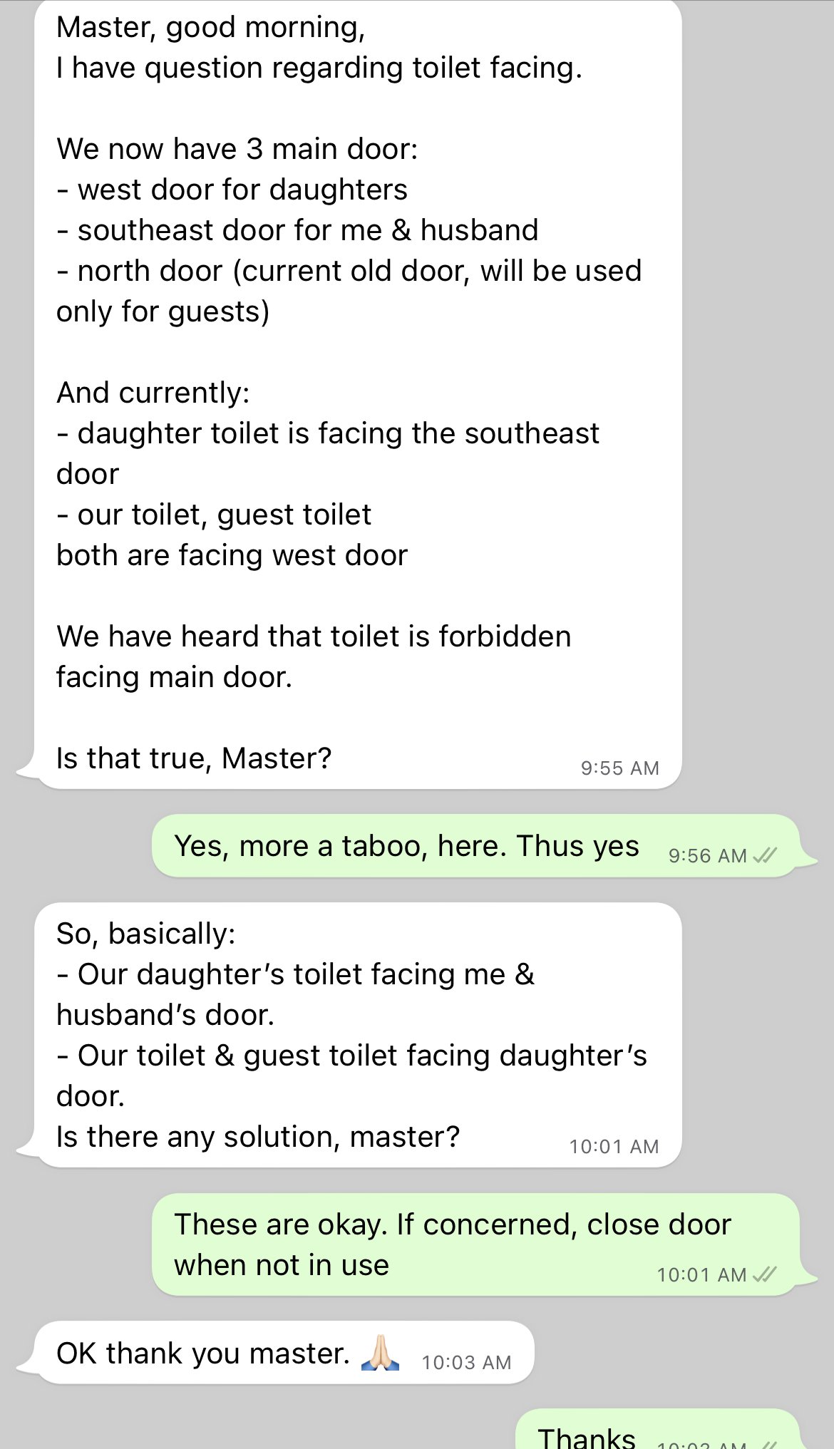 4. Here, it is why some generally say no issue with a toilet about the front door. But others saya NO NO.