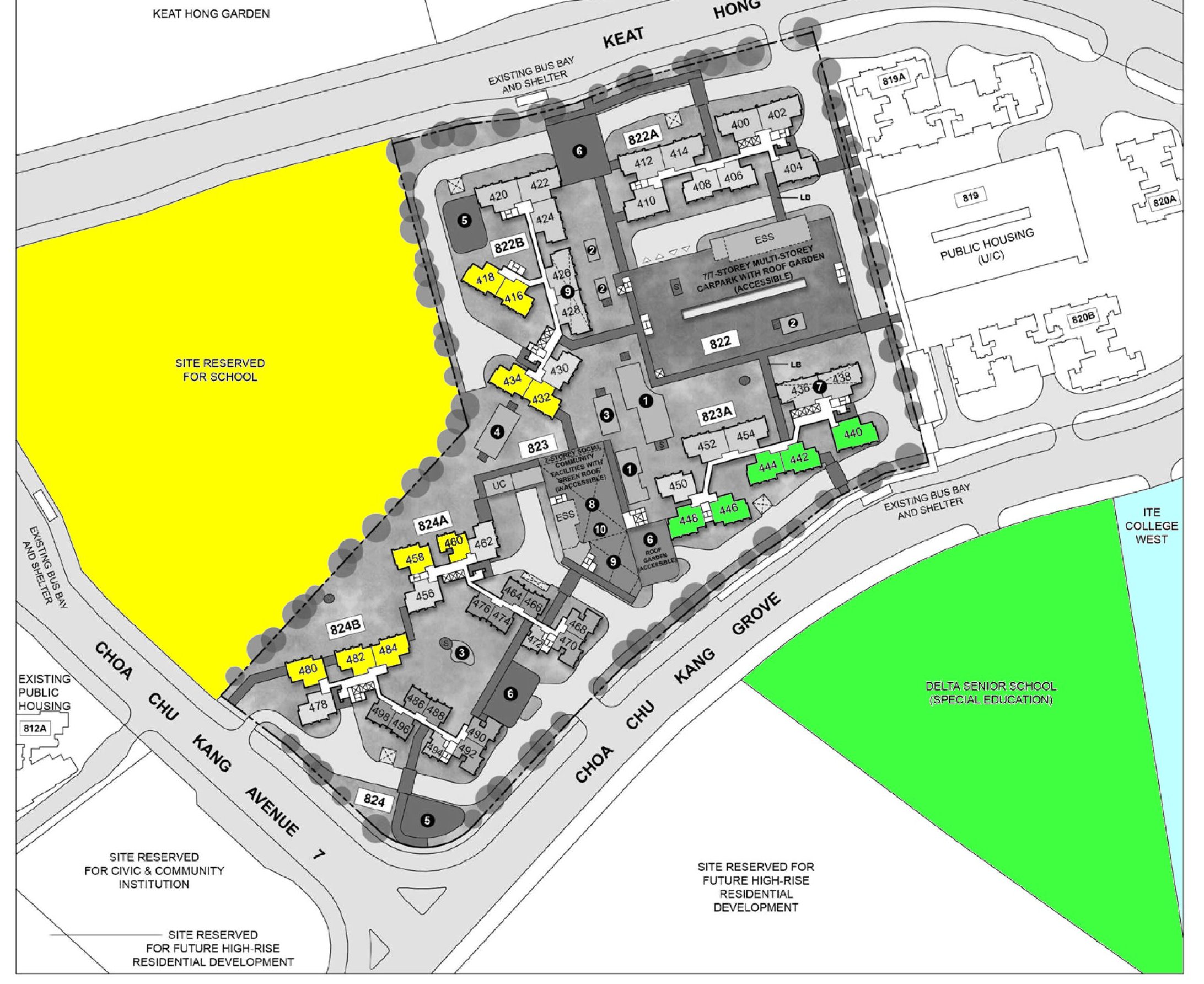Posted August 30, 20223 yr Staff HDB Keat Hong Grange Sales Brochure: keat-hong-grange.pdf Keat Hong Grange (Aug 2022 Build-To-Order) Choa Chu Kang Keat Hong Grange is bounded by Choa Chua Kang Avenue 7, Choa Chu Kang Grove, and Keat Hong Link. There are 5 residential blocks ranging from 19 to 23 storeys in height. You can choose from 987 units of 2-room Flexi, 3-, 4-, and 5-room flats. Keat Hong Grange references the many plantations that used to dot Choa Chu Kang, as well as the landscaping within the development. Enjoy an active lifestyle with facilities such as playgrounds and adult and elderly fitness stations at your doorstep. Alternatively, you can relax at the landscaped roof garden above the Multi-Storey Car Park. A void-deck community centre, and childcare centre, and resident’s network centre are located within the development. Please refer to the site plan located at the top of this page, for the facilities provided in the development. Facilities in this development will be accessible by the public. KEAT HONG GRANGE SITE PLAN