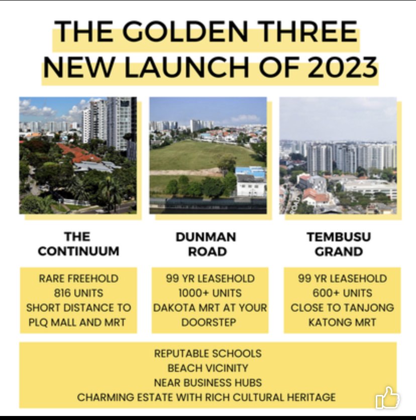 March 18, 20232 yr Author Staff The Golden Three or The Elite Trio: Tembusu Grand, Grand Dunman and The Continuum Many Agents use this same theme: "The Golden Three" or "The Elite Trio" or “Katong’s Golen Triangle” Ok, I get it… Reputable Schools… implies other schools may not be reputable, lah LOL What is next? The Bermuda Triangle of Katong? And also consider Tembusu Grand as Nassim of the East What do you think?" Agents & Developers don't care so long as you just buy any one of these will do. LOL
