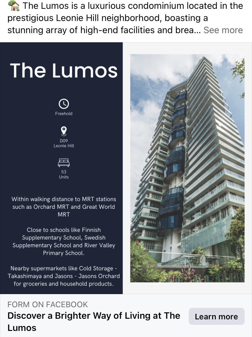 Posted March 17, 20232 yr Staff The Lumos Freehold with 53 units TOP: March 2019 The AD says 🏡 The Lumos is a luxurious condominium located in the prestigious Leonie Hill neighborhood, boasting a stunning array of high-end facilities and breathtaking city skyline views, offering residents an unparalleled urban living experience in District 9! Don't settle for anything less than exceptional and check out the fun facilities and amenities: ⭐Swimming Pool, Jacuzzi ⭐Gym ⭐BBQ ✅Walking distance to MRT stations such as Orchard MRT and Great World MRT. ✅Close to schools like Finnish Supplementary School, Swedish Supplementary School and River Valley Primary School ✅Nearby supermarkets like Fair Price Finest - Scotts Square and Cold Storage - Takashimaya for groceries and household products. This is the best place to be! ✅😉 Click "Learn more" to get the details and book a viewing!