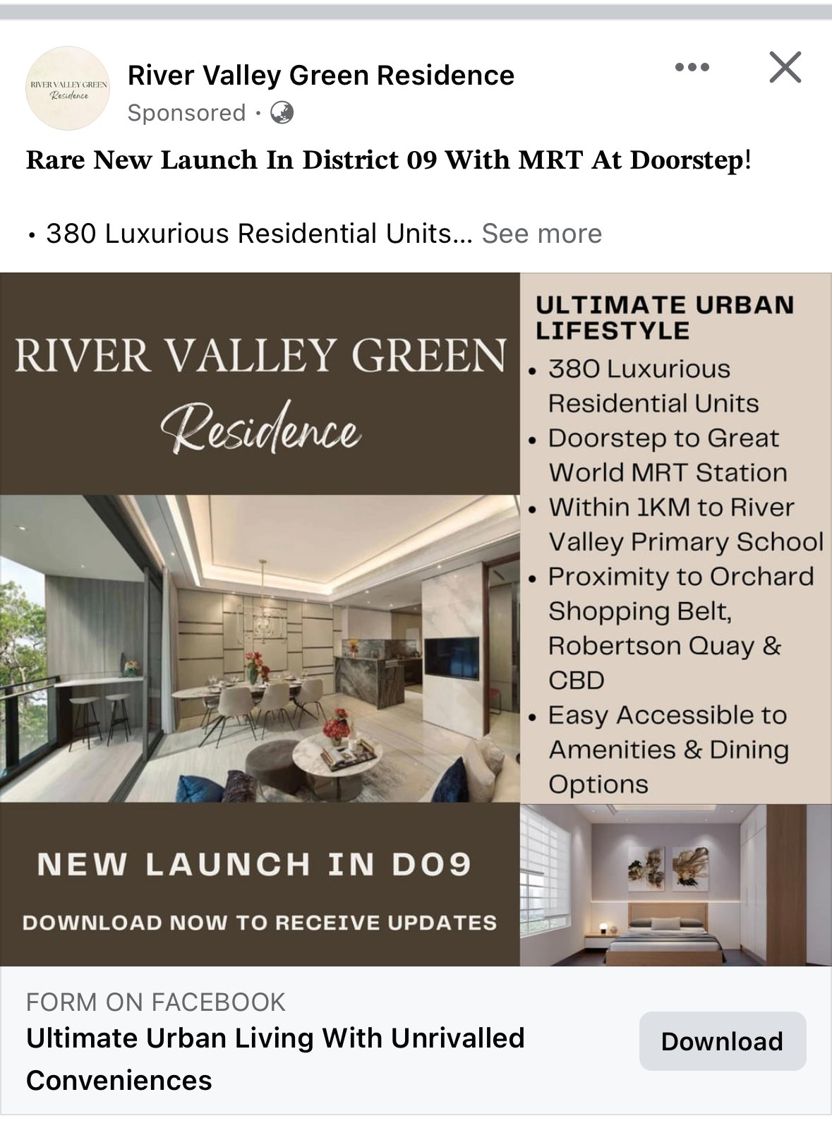 Posted January 21, 20241 yr Staff AD 𝐑𝐚𝐫𝐞 𝐍𝐞𝐰 𝐋𝐚𝐮𝐧𝐜𝐡 𝐈𝐧 𝐃𝐢𝐬𝐭𝐫𝐢𝐜𝐭 𝟎𝟗 𝐖𝐢𝐭𝐡 𝐌𝐑𝐓 𝐀𝐭 𝐃𝐨𝐨𝐫𝐬𝐭𝐞𝐩! • 380 Luxurious Residential Units • Doorstep to Great World MRT Station • Within 1KM to River Valley Primary School • Proximity to Orchard Shopping Belt, Robertson Quay & CBD • Easy Accessible to Amenities & Variety of Dining Options • Enjoy The Convenience of Urban Lifestyle Highly recommended for home buyers and investors. Don't miss out, get the guide price and the project update today!