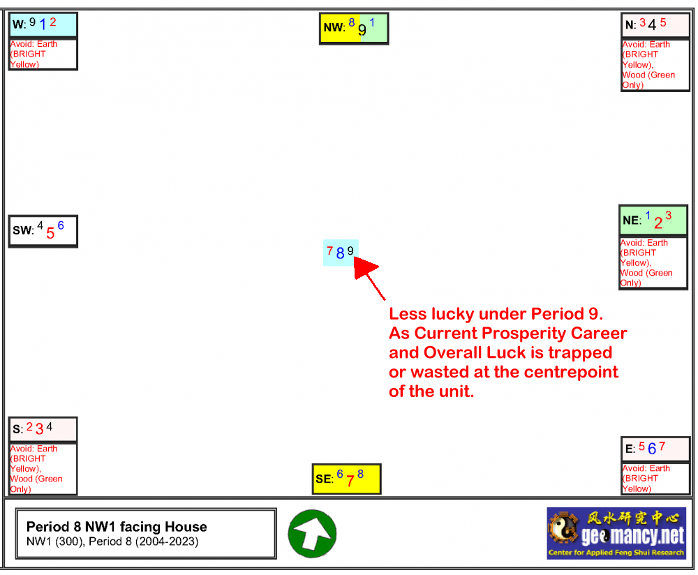 February 24, 20241 yr Author Staff Is my Period 8 house still lucky from 2024 till 2043? Many have collected their keys on or between 2004 till 2023. And due to the change of qi, luck can change as we move into year 2024 onwards. Some have by now felt things may not be smooth or have health issues. The reality is the Feng Shui Qi or lucky sectors will change for either for the better or for the worse. 1. N1 = Less lucky under Period 9. As formerly double #8's at it's frontage. Thus not so smooth under Period 9. https://www.geomancy.net/forums/topic/20083-flying-star-period-8-n1/ 2. N2 & N3 = Better luck under Period 9. From 2024 till 2043. https://www.geomancy.net/forums/topic/20084-flying-star-period-8-n2-n3/ 3. NE1 = Less lucky under Period 9. It also depends on the layout plan. https://www.geomancy.net/forums/topic/20085-flying-star-period-8-ne1/ 4. NE2 & NE3 = Take extra care of health issues from 2024 onwards. https://www.geomancy.net/forums/topic/20086-flying-star-period-8-ne2-ne3/ 5. E1 = Less lucky under Period 9. As Current Prosperity #9 Career & Overall Luck is often wasted at the "rear" or SW of the unit. Check the layout to confirm. https://www.geomancy.net/forums/topic/20087-flying-star-period-8-e1/ 6. E2 & E3 = Luck should be better under Period 9. Again depends on the layout plan - Check what sectors are found at NE = Current Prosperity Career - Good especially if this is the living room or master bedroom & Overall Luck & NW = Current Prosperity Networking & Relationship Luck - front door?. https://www.geomancy.net/forums/topic/20088-flying-star-period-8-e2-e3/ 7. SE1 = Depends on layout plan for both Period 8 and 9. https://www.geomancy.net/forums/topic/20089-flying-star-period-8-se1/ 8. SE2 & SE3 = Lucky during Period 8. For Period 9 generally less lucky. But depends on layout. As Current Prosperity Career and Overall Luck is trapped or wasted at the centrepoint of the unit. https://www.geomancy.net/forums/topic/20091-flying-star-period-8-se2-se3/ 9. S1 = Unlucky under Period 8. In general more lucky in Period 9. However this depends on where is the living room & external features of the unit. Extra care if e.g. a bedroom e.g. Master Bedroom is located at SE with Misfortune/sickness. https://www.geomancy.net/forums/topic/20092-flying-star-period-8-s1/ 10. S2 & S3 = Less lucky under Period 9. As formerly double #8's at it's frontage had now become Past or Gone Luck! https://www.geomancy.net/forums/topic/20093-flying-star-period-8-s2-s3-less-lucky-under-period-9-as-formerly-double-8s-at-its-frontage/ 11. SW1 = Take extra care of health issues from 2024 onwards. https://www.geomancy.net/forums/topic/20094-flying-star-period-8-sw1/ 12. SW2 & SW3 = Depends on external features. Can be luckier under Period 9 especially depending on where is the living room. https://www.geomancy.net/forums/topic/20095-flying-star-period-8-sw2-sw3/ 13. W1 = Better luck under Period 9 but this depends totally on layout plan. https://www.geomancy.net/forums/topic/20096-flying-star-period-8-w1/ 14. W2 & W3 = Less lucky under Period 9 but depends on where is the living room. https://www.geomancy.net/forums/topic/20097-flying-star-period-8-w2-w3/ 15. NW1 = Less lucky under Period 9. But also depends on layout. As Current Prosperity Career and Overall Luck is trapped or wasted at the centrepoint of the unit. https://www.geomancy.net/forums/topic/20098-flying-star-period-8-nw1/ 16. NW2 & NW3 = Less lucky under Period 9. https://www.geomancy.net/forums/topic/20099-flying-star-period-8-nw2-nw3/