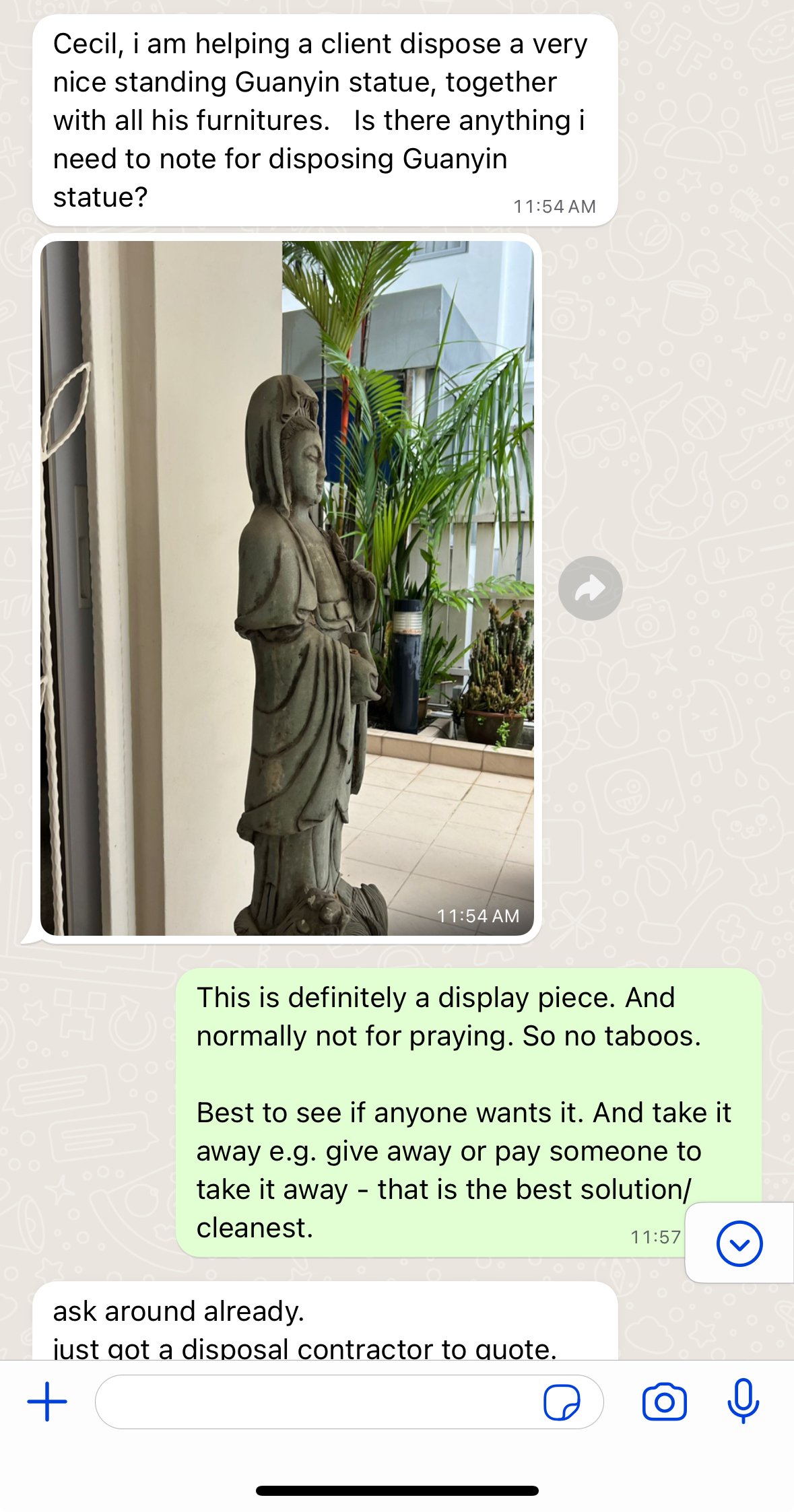 Posted April 17, 20241 yr Staff Cecil, i am helping a client dispose a very nice standing Guanyin statue, together with all his furnitures. Is there anything i need to note for disposing Guanyin statue?
