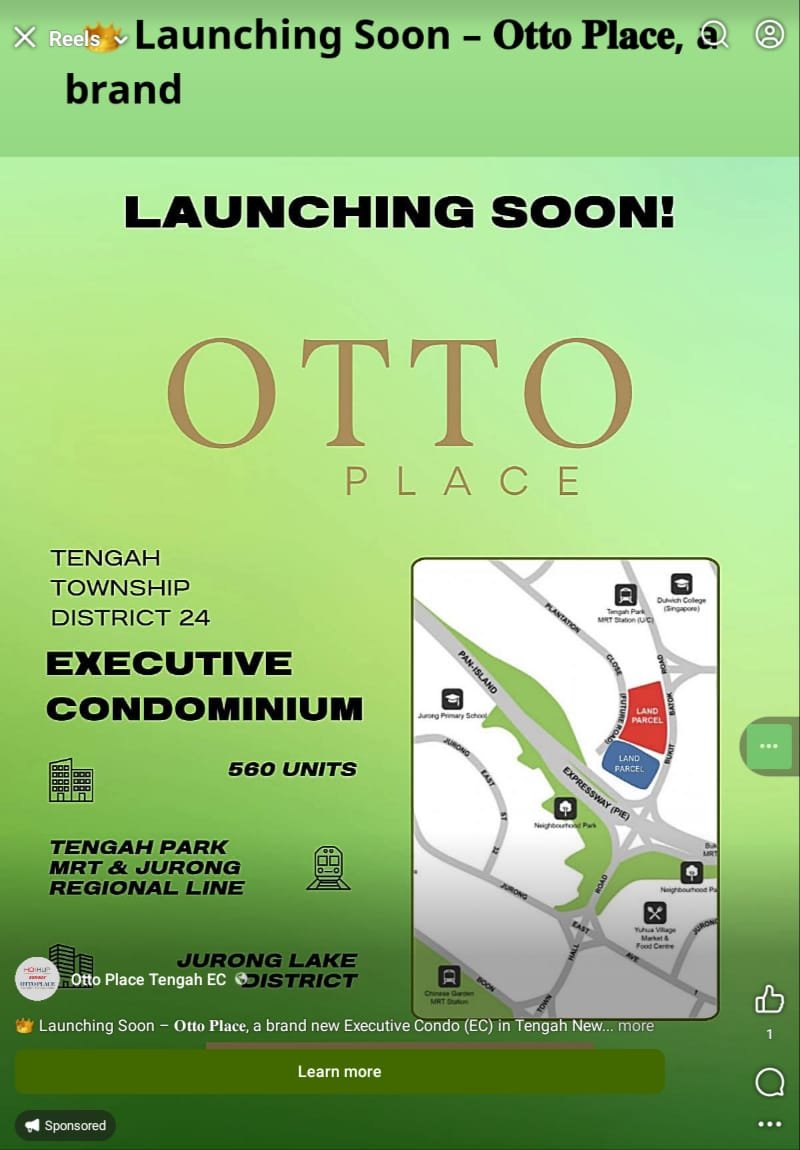 May 8May 8 Author Staff AD says Next new EC to be available. Don't miss it! 🗝 OTTO Place EC – Soon to be Launched! Looking for a value-packed home with strong future upside? Otto Place EC offers private condo living at EC pricing — plus full facilities and CPF grants! 📍Plantation Close – Just minutes' walk to Tengah Park MRT (JE2), in the fast-developing Tengah smart town.