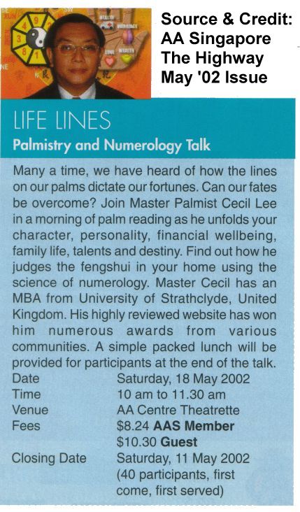 " The Facinating Art of Chinese Numerology & Palmistry talk by Cecil Lee."