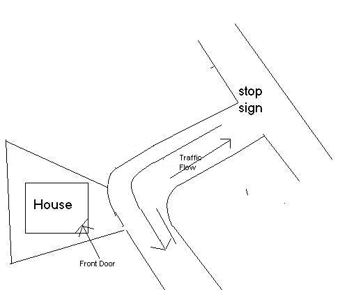 My new home is located on a 90 degree bend (through street) facing east with the front door facing south-east. The back of the house is facing the backyard of another house. There is no slope in my house. My concern is when car makes a right turn, it goes towards the direction of my house but the car has to make a left turn (quarter-circle turn). Is this bad feng shui?