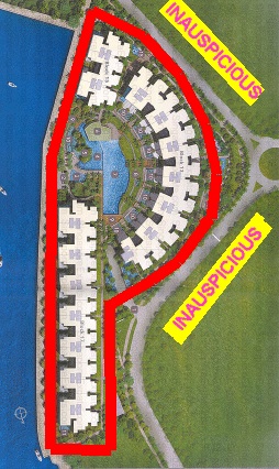 Inauspicious sectors are often external to this development or outside of the red outline.
