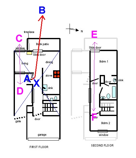 Posted December 15, 200223 yr Staff Dear Josephine,Yes, usually, it is best to check for `leaks' in the house, first.It would be nice if we can enhance but often, we forget that we must first fix-the-leaks.From a Shapes and Forms point, there are several leaks in your home. (Frankly, I have not used other tools, it it involves more anlysis - due to a busy schedule). But from a Shapes and Forms and forms view, there are several leaks:-1. Narrow hallway, which is on one side of the house.2. Markings A to B:-The back patio sliding door. The path of qi from A to B is a direct path. And not auspicious. (Especially if the door is opened).In addition, because of this long corridor, there is supressed Qi. And it can also leak the other way thru the door towards the garage area.3. Markings C to D:-Based on your diagram, it looks like there are widows at C or D. If so, there is a potential leak of qi especially if the windows are opened. Try to open alternative windows in this case.4. Marking X:-The entrance into the house is close to the centrepoint of the house at Marking X. There is compressed qi (narrowing) at this area. Upstairs also has similar compressed Qi at markings E and F.5. In your home, it seems that qi flow cannot properly meander from the living room area to the other side i.e. garage facing side and vice-versa. This has an impact or strifle your luck.Warmest Regards,Cecil Quote On 12/11/2002 6:31:00 PM, Anonymous wrote:Hi to the feng shui masters, I wish I had read about fengshui when I was buying myhome. I love the location ofmy little townhouse but I feelthe sectors in my house needimproving because of badlayout. (please see attachedjpg).I think my career sector ismissing. The relationshipsector is in the garage. Myfame/reputation is in thekitchen and my family sectorhas the fireplace. I havenarrow hallways that with 2-3doors aligned. On top of that,the house number is 2476.Whew! :-)I hung a crystal on thehallways. I placed plantsaround the fireplace. I placedterracota pots in the kitchen.But I haven't been promoted in5 years even though my bosskeeps promising it. I stillfeel money is going out of myhands too fast even if Ibudget it. Some things arestill not working for me.Please let me know otherimprovements I can make. I amfemale, Kua number 8, firehorse year.Thank you for your help.Josephine