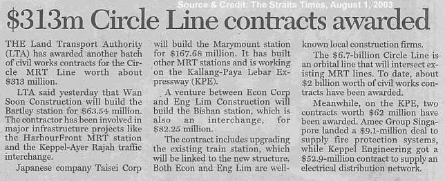 Posted August 1, 200322 yr Staff Since the contract to built the Circle-line is confirmed; try to do some homework to see if your current; future home falls within the vicinity of an MRT station within the circle-line:) Cheers!More resources on the Circle Line:- http://www.sla.gov.sg/announcement/circleline.html http://app.internet.gov.sg/scripts/lta/corp_press_content.asp?start=805 Circle Line Stage 3 - MRT STATION LOCATIONSThe alignment and location of the stations of CCL Stage 3 have been finalised. This stretch of the CCL is 5.7 km long with five stations at the following locations:NEW ? Bartley Road, near Maris Stella High School? Serangoon MRT Station, an interchange station with North East LineNEW ? Serangoon Avenue 3, near Lorong Chuan? Bishan MRT Station, an interchange station with North-South LineNEW ? Marymount Road, near Marymount LaneCCL Stage 3 will cost about $1.2 billion to build. Construction is targeted to start sometime in the third quarter of 2003, and is expected to complete by early 2008." Source: Singapore Land AuthorityExtracted from Source article:http://www.sla.gov.sg/announcement/circleline.html