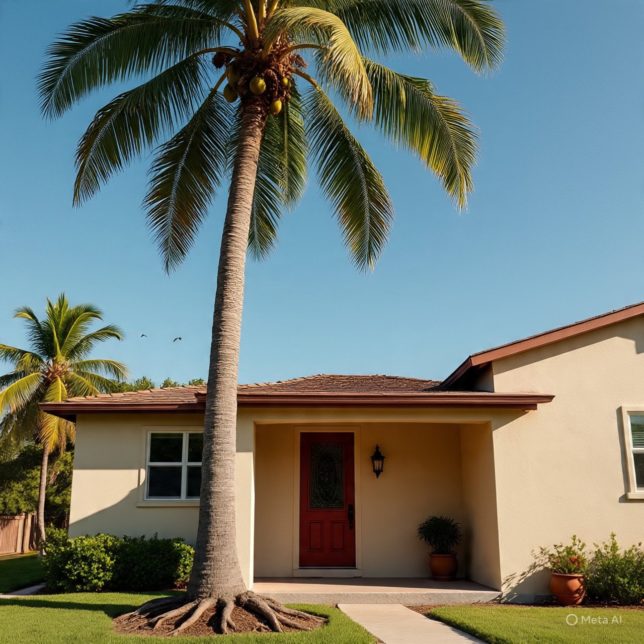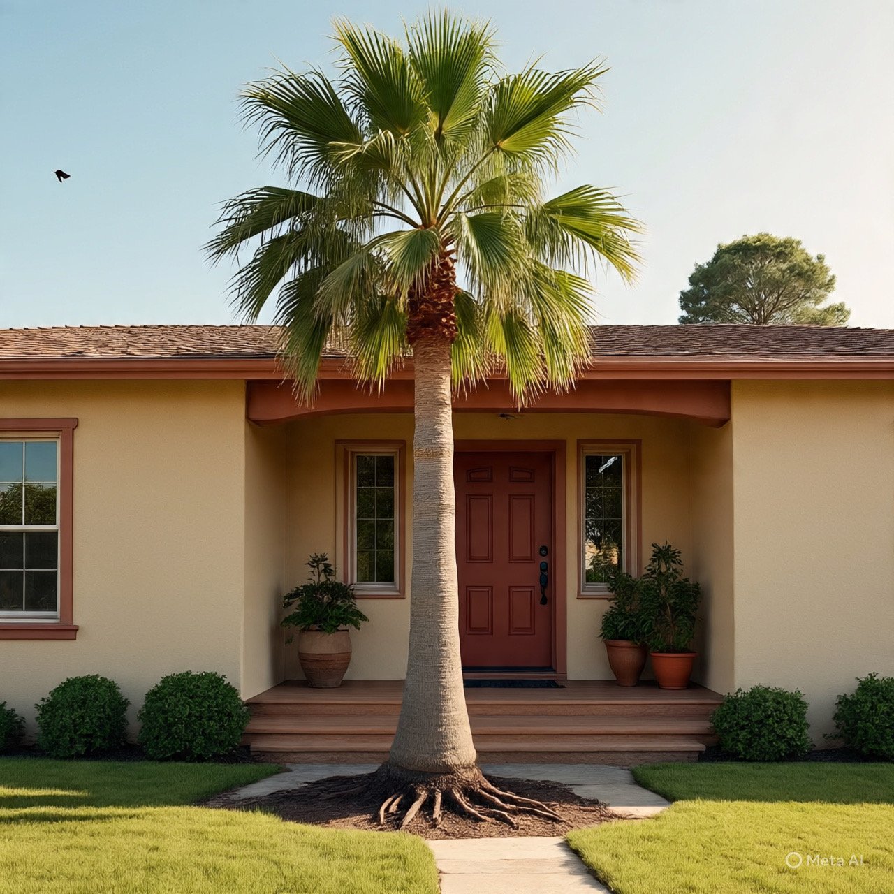 August 30Aug 30 Staff Front Doors of both photos are not affected by the palm tree trunk +++ This front door is also not affected by the palm tree trunk A narrow margin... since it is near the side frame of the front door. Thus, it can be regarded as unaffected by Sha Qi or the Poison arrow from the trunk of the palm tree. Credit: Asked Meta AI to help me imagine these three images.