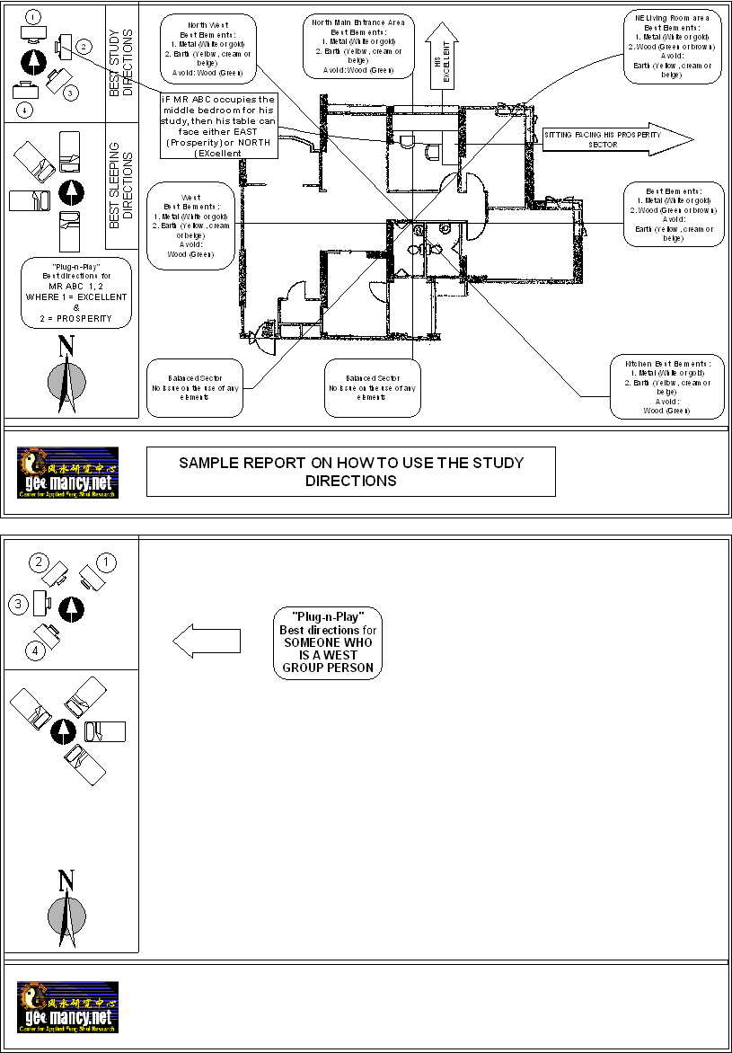 Posted November 17, 200421 yr Staff Dear Mei, Please click on the attachment for a sample report on how to: 1. draw a centre grid of a home 2. place the study or work table to face either Prosperity or Excellent sector. 3. In the attachment:- 3.1 you can see a MR ABC. His best work directions are North (Excellent) and East (Prosperity). 3.2 He decides to use the middle bedroom for his work or study. 3.3 In the sample report, one can see that he can either place his work/study table facing North or East or both. Warmest Regards,Cecil Quote On 11/17/2004 6:17:01 PM, Anonymous wrote:First off my room is in thenorth east of my apt. and mytable is facing east (worststudy position)in mybedroom. I'm trying torearrange the study table inmy room but i don't knowwhether i should take thecentral point of the apt as aguide to determine the exactdegree of the directions or mybedroom as the central point.For example, if i were to takeconsider the apt as a whole mystudy table would be facingnorth-east(best studyposition)but if i wouldjust consider my bedroom as astandalone my study tablewould be facing east(worststudy-position). The reason Iwant to rearrange my studytable is because i just movedinto a new apt and my gradeshaven't been really good forme. And it's my first timepracticing feng shui