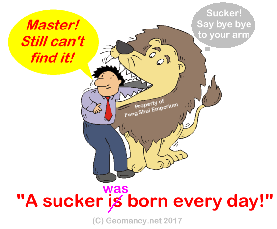 October 13, 20196 yr Author Staff Many Feng Shui Masters (FSMs) are themselves a Feng Shui Store. In Singapore and Malaysia one can easily notice walking past a store selling lots of modern commercial Feng Shui products. The FSMs in these stores are often simply a Sales person. Ask: Must I buy from YOU? When the buying Stops! The selling Can! These products are for the unlucky. Why unlucky? Donate one's hard earned money to these sellers. LOL